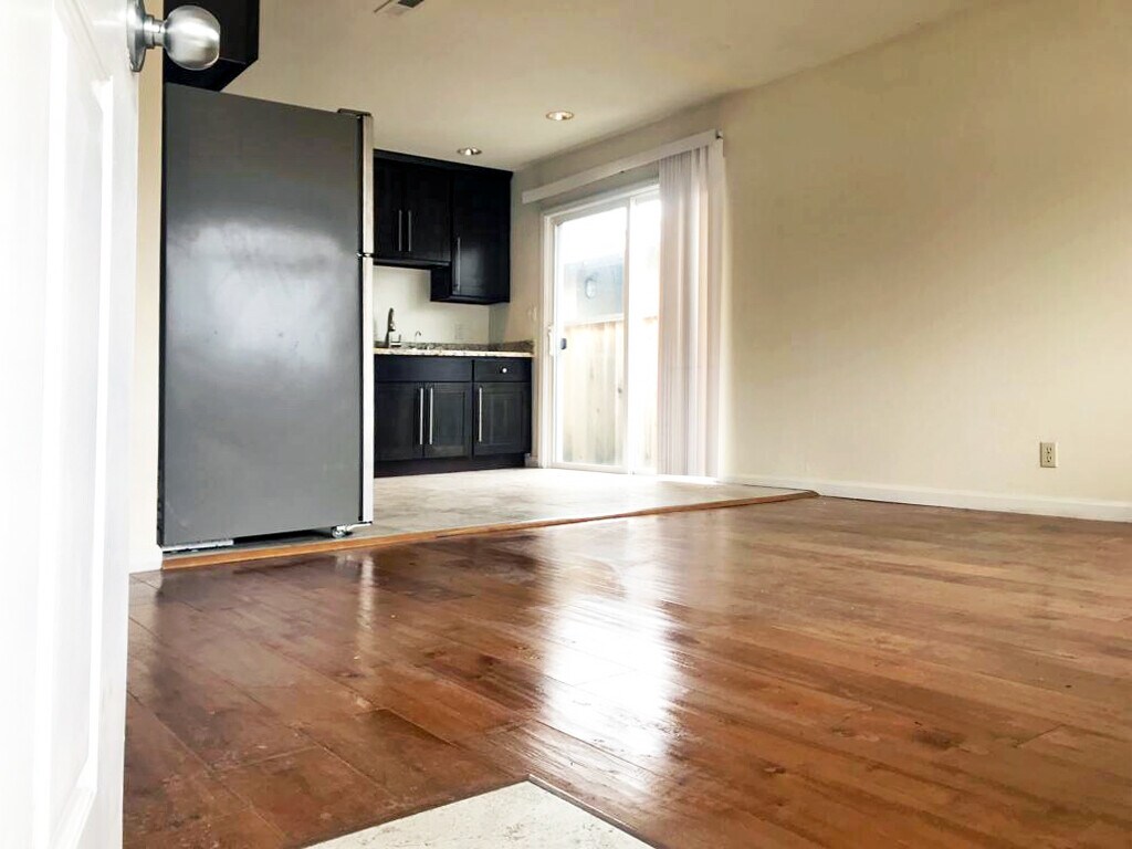 Lovely duplex house with garage. Large private backyard backs to Saratoga Creek! Located on a quiet street in a good neighborhood in Santa Clara, it has been completely renovated: • Handscraped, wide-plank maple hardwood floors throughout the house • Gourmet kitchen with maple Shaker cabinetry, European pulls, designer granite countertops, commercial pull-down faucet • Newer stainless steel dishwasher, range hood and refrigerator • Italian porcelain tile throughout kitchen and bath • Double-pane windows and patio door • Laundry nook with washer/dryer hookups inside house • Extra deep one-car garage with tons of storage space • Private backyard with patio for outdoor entertaining and dining Fantastic location – on a quiet residential street yet close to supermarkets, shopping, restaurants and schools, and all major commute arteries. Walk to 52-acre Central Park/tennis/basketball courts, Santa Clara Central Library. Available Mar 9. No smoking please. Cat, small dog okay. 1-year lease.