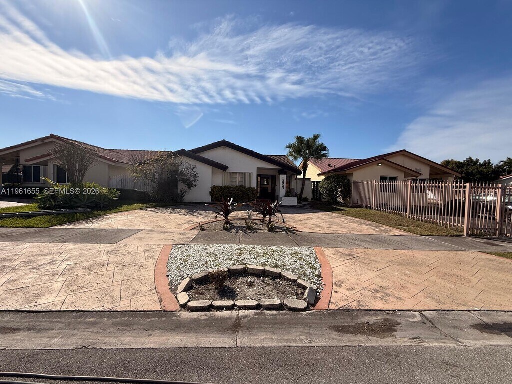Very nice and well kept home. It's a spacious 3-bedroom, 2-bathroom place, perfect for a family, and the location? You can’t beat it! minutes away from schools, markets, and some great restaurants. Tile flooring all around, so it’s easy to keep clean. The backyard is ready for all kinds of get-togethers, whether it's a BBQ or just hanging out. The circular driveway makes parking a breeze, and with impact windows, you’re good to go with peace of mind. very spacious patio with an outdoor sink —perfect for those outdoor meals. Not to mention the gazebo to kick back and relax under. This place has everything you need and more! MLS # A11961655