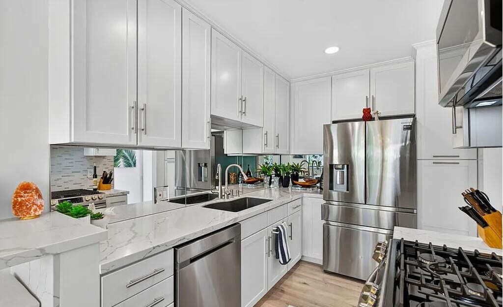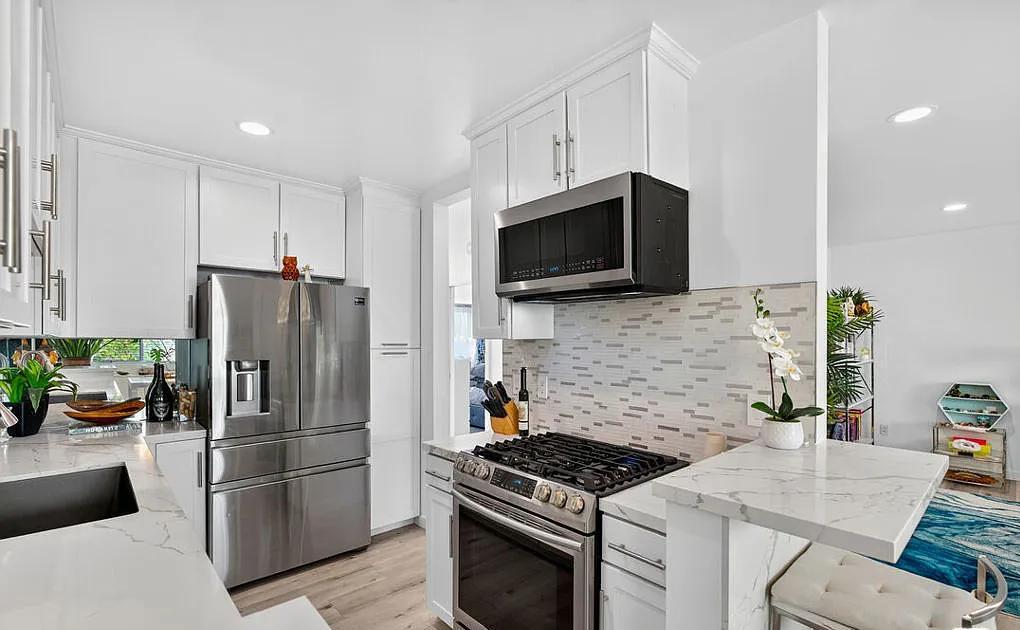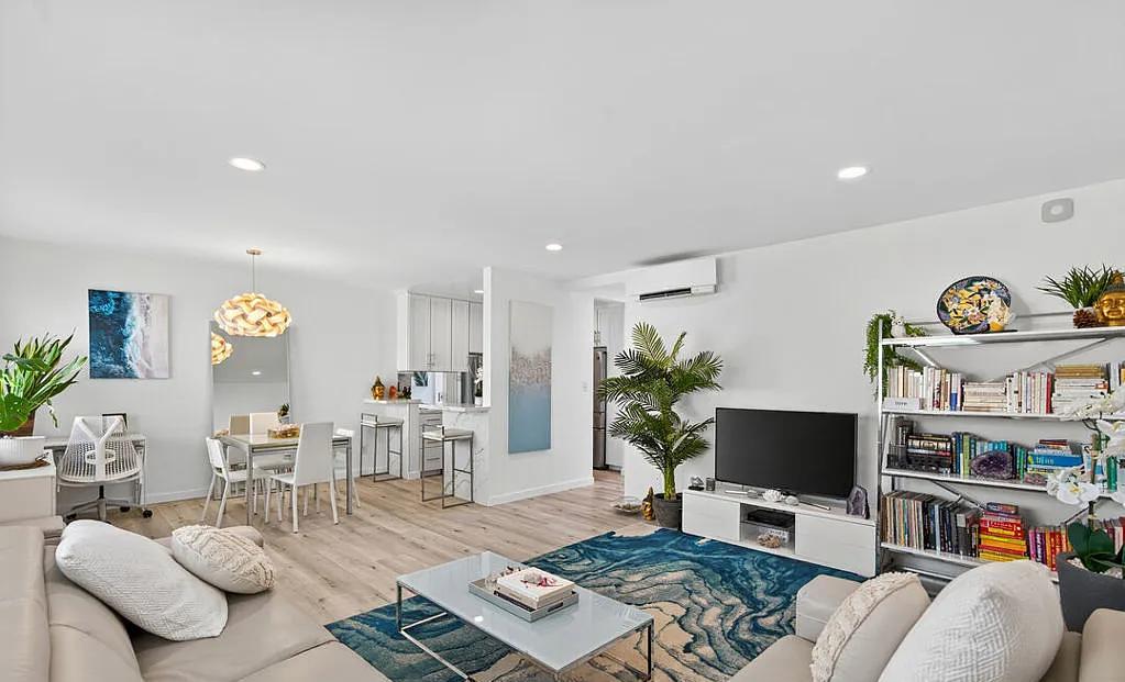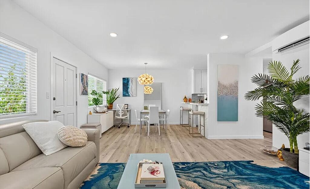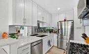 Neat 1bedroom furnished in Satan Monica Welcome to this beautifully reimagined, top-floor condo offering 884 sq ft of thoughtfully curated living space in the heart of Santa Monica. Completely remodeled from top to bottom, this bright and airy retreat combines luxury, comfort, and convenience just moments from Montana Avenue, the 3rd Street Promenade, Farmers Markets, shopping, dining, cafes, everyday conveniences, and iconic beaches. Step inside to an open floor plan featuring recessed, WiFi-enabled LED lighting and luxury vinyl plank flooring throughout. Beneath it all, soundproofing panels ensure your home remains a peaceful sanctuary. New double-paned, UV-protected windows offer energy efficiency and quiet comfort. The sleek, modern kitchen is a showstopper with waterfall-edge quartz countertops, bar seating, double stainless-steel sink with touchless faucet, and Energy Star appliances, perfect for the home chef and entertaining.