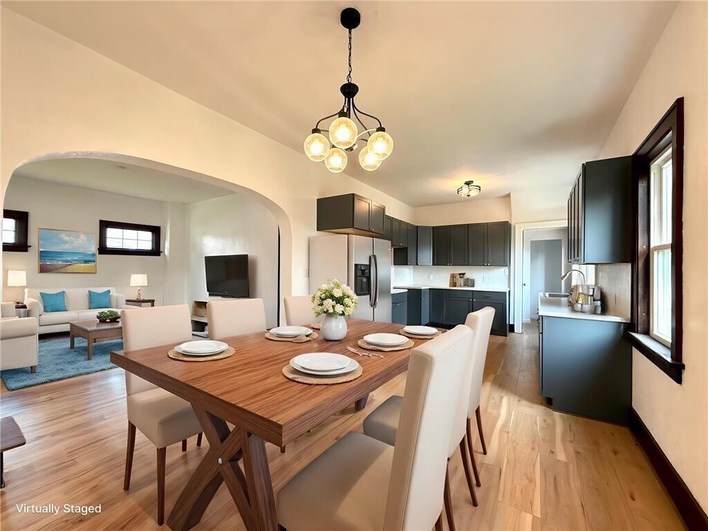 This home has recently been updated with new windows, new bathrooms, new kitchen, new deck and so much more! Home has 2 bedrooms on the main floor along with the laundry, kitchen, dining, living room and sunporch. The upper level has a large bedroom with closet and its own bathroom