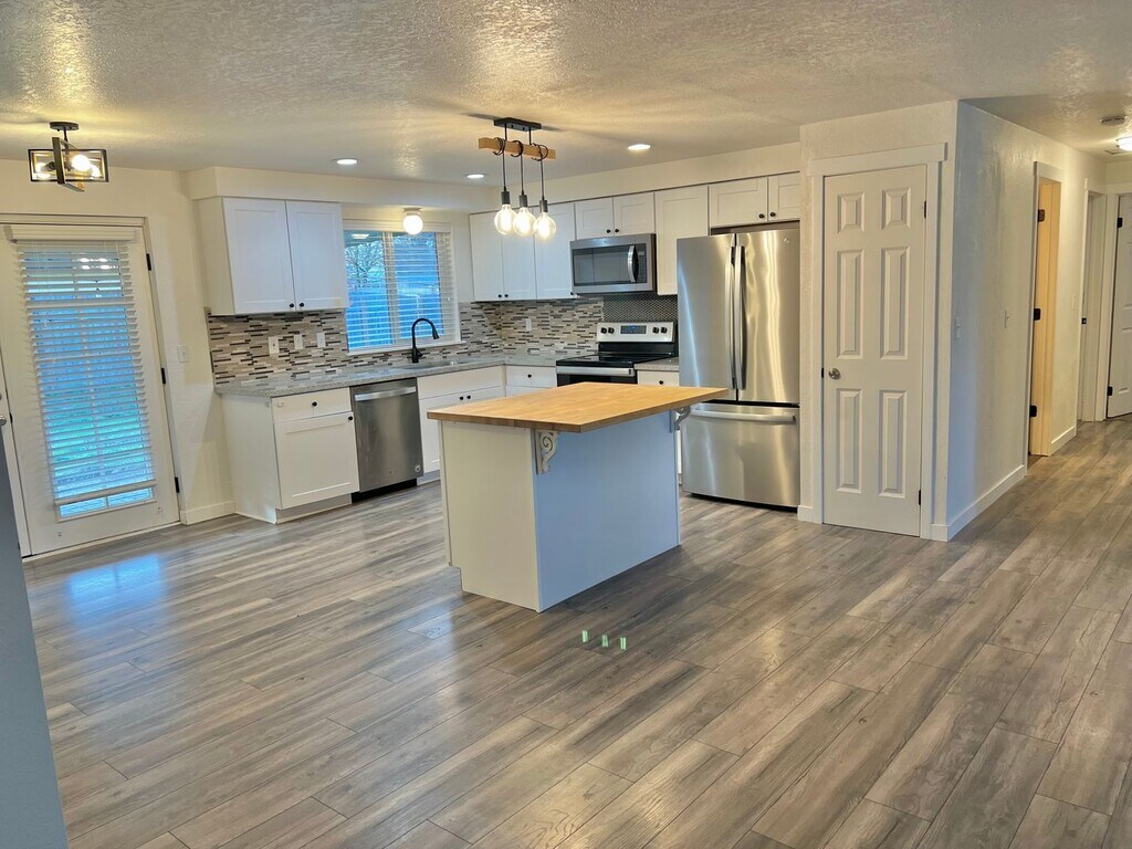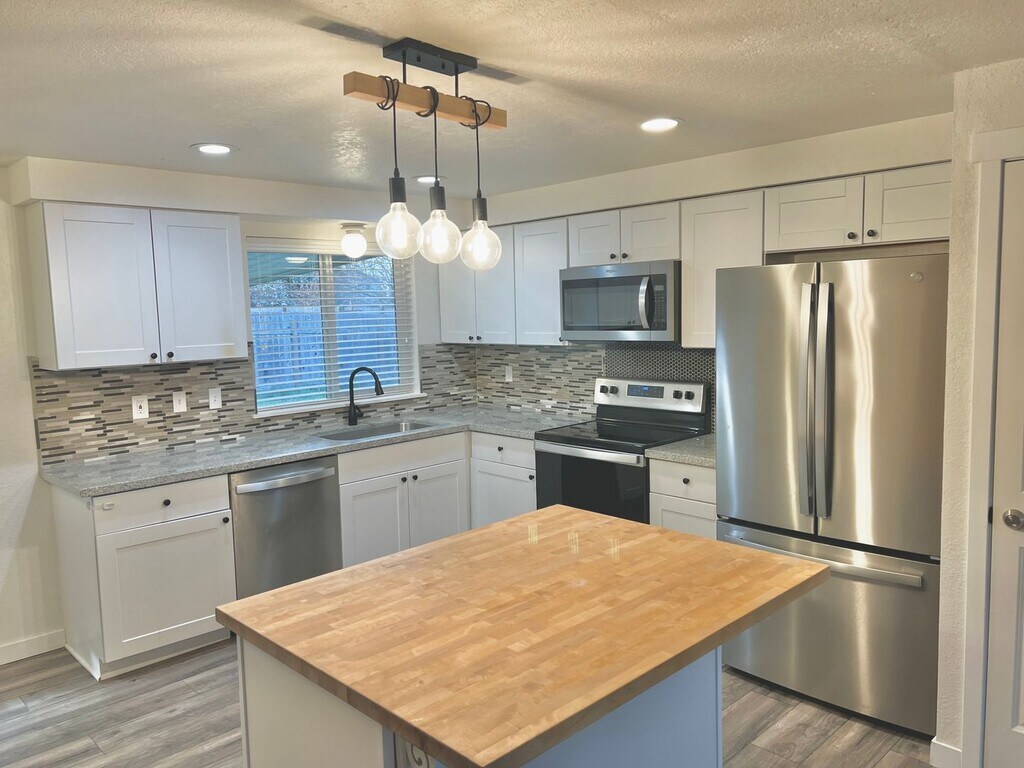 Nicely updated 3-bedroom, 1.75-bath single-story home on an oversized corner lot just under ¼ acre. Open-concept layout with an island eating bar that separates the living room from the kitchen. The kitchen is a cook’s delight, featuring quartz and butcher block countertops, stainless steel appliances, and a pantry. A full-size washer and dryer are included. The large 2-car garage offers additional driveway parking. The guest bathroom has been updated with quartz countertops and a tiled tub surround, while the primary bath is also updated and features a tiled walk-in shower. The oversized yard is fully fenced and great for entertaining and/or your pets. Conveniently located just minutes from JBLM military base , freeway access, schools, shopping, restaurants, and the Regional Athletic Complex. Additional Details: NO SMOKING. Pet Friendly with pet deposit/fee. Tenant is responsible for all utilities and costs associated with caring for lawn and beds. Verifiable Gross Monthly Income of 3x Rent Rate. Minimum Credit Score of 600 and. 12-Month Lease Review all qualifications before applying online. We collect First full month's rent $2,400 Sec Dep $2100 nonrefundable fee/admin. fee $300. Email is best so you can receive our photo tour link prior to in-person viewing.
