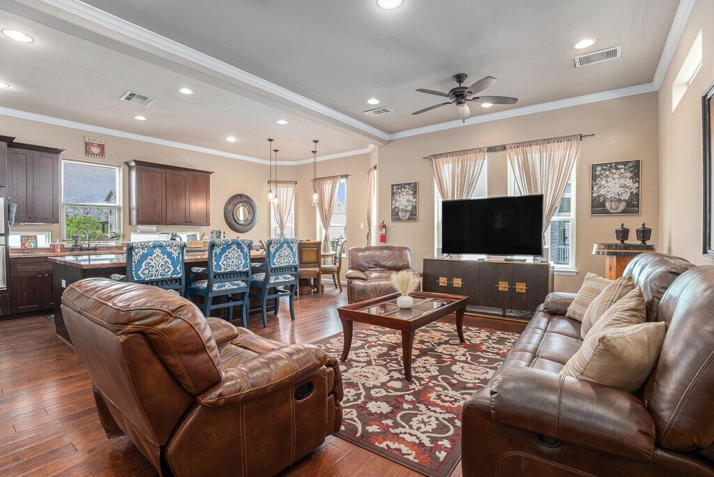 FULLY FURNISHED!!! This custom-built home offers everything you could need,whether you're looking for a long-term rental,a FULL comfortable place to call home in a great school district,or a spacious property with beautiful bayfront views. The home spans four stories,with stunning bayfront views from two large balconies. The ground level provides ample space for parking,storage,a hot tub,above ground pool,an outdoor grill,and entertainment areas. Upstairs,you’ll find a spacious family room that opens up to a chef's kitchen,featuring a large walk-in pantry,custom wood cabinetry,stainless steel KitchenAid appliances,granite countertops,breakfast room,formal dining room,and pool room. The primary suite is on the second story which includes two bedrooms with a shared Jack-and-Jill bathroom. The third floor has a bonus game room! Enjoy walking distance to the bay or the shops in old town Seabrook. MLS# 60513754