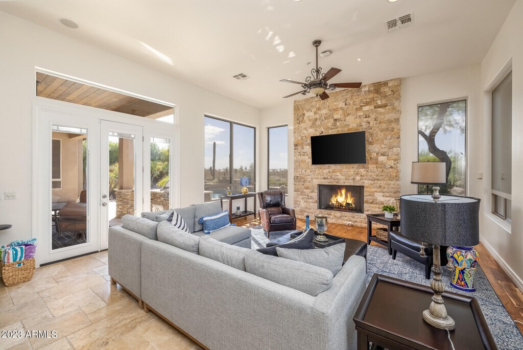 Welcome to your luxurious vacation rental in Scottsdale,Arizona! This stunning 3437 sq ft property offers the perfect blend of comfort and elegance for your getaway. With 4 spacious bedrooms and 3 bathrooms,there's ample space to accommodate you and your guests. As you enter,you'll be greeted by a beautifully designed gourmet kitchen,equipped with top-of-the-line appliances and everything you need to prepare delicious meals and extensive coffee bar with various coffees in addition to Nespresso espresso coffee maker/frother. The family room boasts a cozy fireplace,creating a warm and inviting atmosphere. The main bedroom is a true retreat,featuring a jetted bathtub for ultimate relaxation. One of the highlights of this property is its expansive backyard,complete with a desert landscape and a sparkling pool. Enjoy the privacy provided by the view fence and the unobstructed views. Whether you're lounging by the pool or hosting a BBQ on the patio,the outdoor space is perfect for enjoying the Arizona sunshine. While staying in Scottsdale,you'll have access to a wide range of activities and attractions. Explore the charming Old Town Scottsdale,known for its vibrant art scene,fine dining,and unique shops. Outdoor enthusiasts can indulge in activities like ATV rentals,horseback riding,and hiking in the nearby McDowell Mountain Sonoran Preserve. Golf lovers will be thrilled with the multiple golf courses available in the area. After a day of adventure,unwind at one of Scottsdale's unique bars or try your luck at the local casino. If you're looking for family-friendly entertainment,visit the aquarium or explore the interactive exhibits at the museums. And for the golf enthusiasts who want a twist on the classic game,Topgolf offers a one-of-a-kind experience. Scottsdale,Arizona,truly offers something for everyone,and your luxury vacation rental is the perfect home base to experience it all. Enjoy the comforts of this exquisite property while immersing yourself in the rich culture,stunning landscapes,and exciting activities that Scottsdale has to offer.