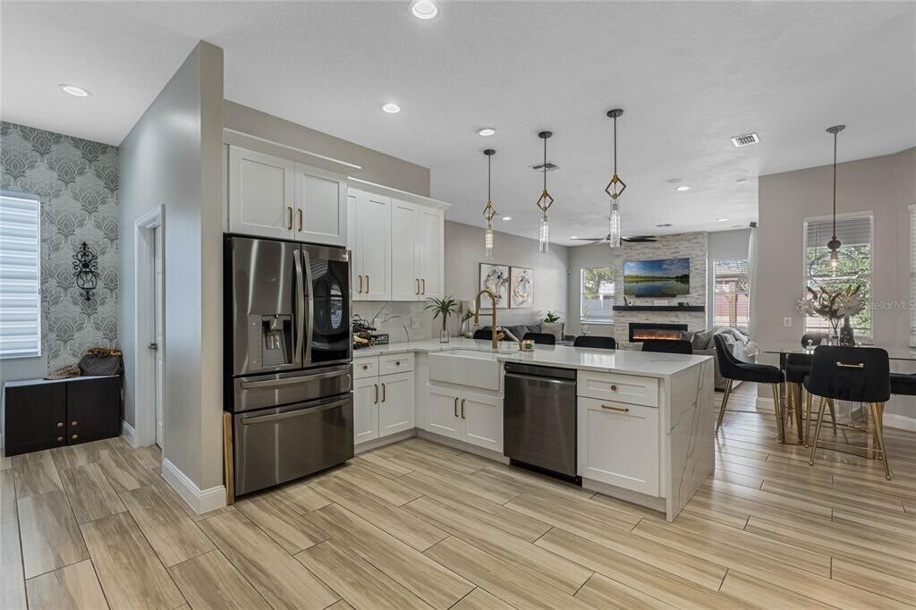 Welcome to this beautifully designed one-story home in the highly sought-after Windermere community! With 4 spacious bedrooms and 3 full bathrooms,this home offers the perfect blend of comfort and style. Featuring modern finishes throughout,you’ll immediately notice the sleek,no-carpet flooring that flows seamlessly across the open-concept floor plan. The gourmet kitchen is a chef’s dream,complete with upgraded appliances,elegant cabinetry,and plenty of counter space for meal prep. It opens to the inviting living and dining areas,making it ideal for both everyday living and entertaining. The main living room also boasts a striking electric fireplace,perfect for cozy evenings at home. Step outside to the oversized,paved backyard – a private retreat ready for outdoor gatherings,relaxation,or gardening. An avocado tree adds a unique touch,offering fresh fruit just steps from your door! The master suite is a true sanctuary with a spacious layout,custom walk-in closet,and a luxurious en-suite bath featuring a separate tub for ultimate relaxation. This home is also equipped with a hardwired alarm system for your peace of mind,and pest control is included in the rent,providing added convenience. Located in the highly desirable Windermere area,this home offers proximity to top-rated schools,fine dining,upscale shopping,and beautiful parks. With easy access to major highways,you’re just minutes away from everything you need while enjoying the serenity of this community. Don't miss out on this home and schedule your private showing today! MLS# O6376833