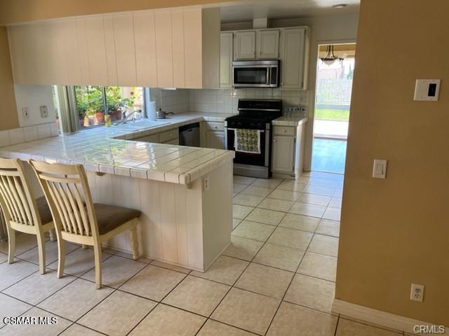 Move-in ready Granada Hills gem packed with amenities! This spacious single-story home offers 4 bedrooms and 3 bathrooms across 2,250 sq ft of well-designed living space. Enjoy an open floorplan with soaring vaulted ceilings, a cozy living room with fireplace, and a formal dining area perfect for entertaining. The eat-in kitchen includes a pantry, breakfast bar, and appliances--stove/oven, dishwasher, and microwave. A built-in wet bar adds extra charm for hosting. Two of the bedrooms feature en-suite bathrooms, including a primary suite with a walk-in closet. The fourth bedroom is ideal as a home office or guest room. Step outside to a large, private backyard with a covered patio and built-in bar that is perfect for outdoor dining and relaxation with mountain views. Additional features include a two-car garage, driveway parking, and included gardening service.