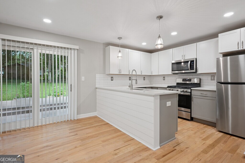 Welcome to this cozy ranch-style sanctuary in East Point, featuring 4-sided brick construction and oak hardwood floors throughout. This home offers 4 bedrooms and 3 bathrooms, with a flexible layout including a finished basement studio suite with kitchen and laundry. Upstairs, enjoy 3 spacious bedrooms and 2 updated bathrooms, along with a contemporary, newly renovated kitchen with stainless steel appliances and stylish finishes. The property has undergone a complete renovation, including a new roof, plumbing, electrical, energy-efficient windows, brand new central heating and air, and a new water heater. The lower level is completely separate, making the finished studio suite perfect for extended family, guests, or creative living. Throughout the home, you'll find modern updates that make it both move-in ready and immaculate. Step outside to a level, completely fenced-in backyard with a private deck and enough space for a garden - ideal for gatherings or quiet relaxation. Located within walking distance to the East Point MARTA station and East Point City business district, and just minutes to the airport and Downtown Atlanta, this property combines comfort, convenience, and opportunity. My awesome client left no stone unturned - this gem will not last long! Don't miss the chance to live in this move-in ready gem. Schedule a property tour and make 1335 East Washington Road your new address! The home is leased as-is in current condition. Tenants are responsible for all utilities. NO PETS and NO SMOKING. Rent also setup up on an autopay system. Your account (savings/checking/prepaid Netspend card) will be debited every 1st of the month. does not advertise on Facebook or Craigslist. Be advised that the sq ft and other features provided may be approximate. Prices and/or availability dates may change without notice. Lease terms 12 months required. Application fee is a non-refundable $75 per adult over 18 years of age. One-time $250 Administrative fee within 24 hours of approved application.