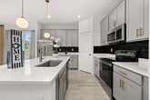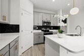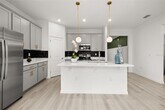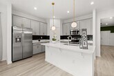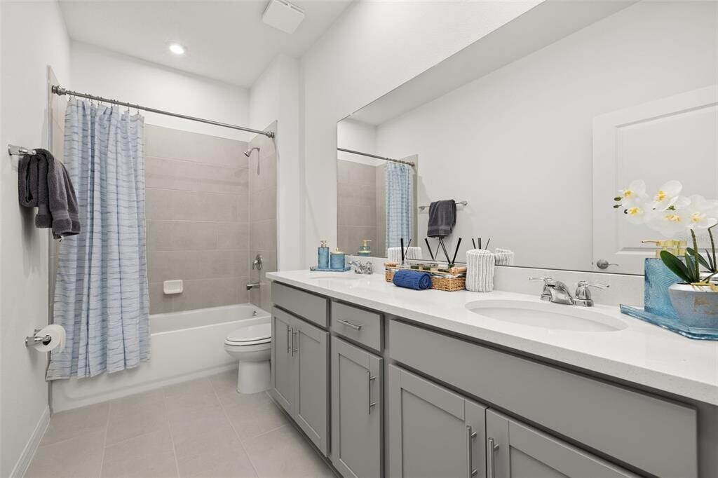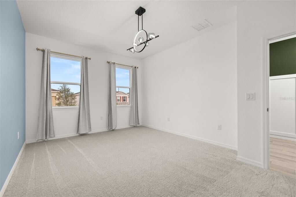 For Rent this beautiful brand new,never lived in Home with 4 bedrooms and 3 full baths. As soon as you walk in,find a long hall with decorative wainscoting wall panels. To the right find a junior master bedroom,walk in closet and a full bathroom with quartz countertop. Entering the open floor plan; The kitchen is open and airy and features light grey cabinets with gold accent hardware,stainless steel appliances and black backsplash. A large island compliments the space for meal preps and entertainment with pendant lights. The living room is ample and features vinyl pkank flooring throughout all the wet areas and a feature TV wall with slat wood paneling that can hold up to a 100in TV. A covered patio to relax in the afternoons can be accessed from the living room. Generously sized primary suite. Large wall in closet. The primary bathroom has a linen closet,dual sinks and an enclosed shower.. Laundry room with washer and dryer. Three additional bedrooms with a third bathroom make it ideal for growing families. This home has it all! The landlord thought about every idea possible,including a water softener,decorative curtains,and gutters. Located minutes from Lake Eva Park and Ben W. Graham Park,the community offers a pool cabana,dog park,gazebo,walking paths and a playground. There is an additional charge of $10/month for high quality AC filters MLS# S5140481