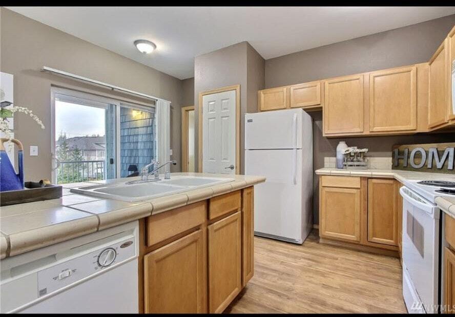 Tucked away & surrounded by miles of open space. Light pours into upper unit from oversized windows, casting natural light on a spacious living room with cozy fireplace. Enjoy maintenance-free living while relaxing on deck overlooking greenbelt & Edmond Park. Entertain a crowd in the hardwood floored kitchen that flows into the living rm. This 2 bedroom 2 bath condo is perfectly situated along I-5. Few minutes away from JBLM, Amazon & the #2 ranked public golf course in Washington State $2080 + $70 (SEWER Charges) = $2150 due each month.