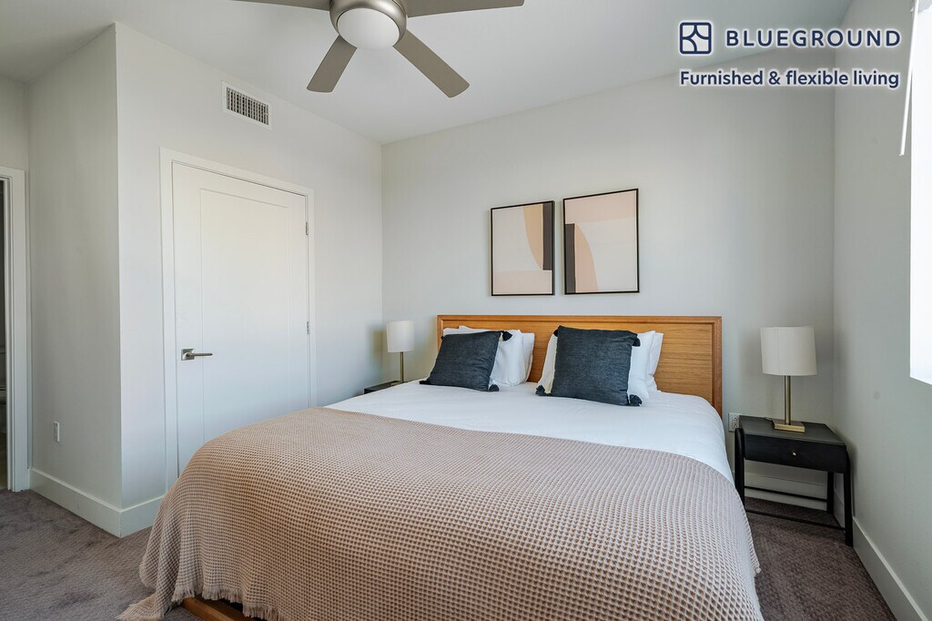Feel at home wherever you choose to live with Blueground. You’ll love this cozy Carmel Valley furnished two bedroom apartment with its modern decor, fully equipped kitchen, and roomy living room. Ideally located, you’re close to all the best that San Diego has to offer! (ID #SAN57) The advertised rate of $4,500/month is the lowest available price, based on a 11 month(s) and 29 day(s) stay with a move-in date of February 1, 2026. Rates vary depending on the duration of stay, season, and other parameters. For exact pricing and additional pricing components, please visit our website and enter your desired move-in and move-out dates. The rate is applicable when billed upfront; it can be higher if billed in multiple payments. Brokers are welcome to reach out. Were you looking for an unfurnished lease? Try Blueground instead and upgrade from unfurnished to furnished living: - Furnished at rates comparable to unfurnished - No setup or furniture costs - save thousands - Move-in ready - save time, just bring your suitcase Designed with you in mind Thoughtfully designed with bespoke finishes, modern furnishings, and a fully equipped kitchen, you’ll enjoy that “I’m home” feeling with this Blueground apartment. Whether you’re lounging in your stylish living room streaming the latest and greatest entertainment on the smart TV or premium wireless speaker, or getting some well-earned rest on the superior quality mattress with luxury linens, you’ll fall in love with everything this Carmel Valley apartment has to offer. This apartment also offers in-apartment laundry. Sleeping arrangements Queen Bed, 63in/160cm King Bed, 70.8in/180cm Amenities Building amenities unique to this two bedroom apartment include an on-site: - BBQ Area - Dryer - Elevator - Swimming pool - Washing machine - Lounge - Parking - Pets allowed Arrival and ongoing support The entire apartment is yours to enjoy! Throughout your stay, you’ll have access to our Client Experience team through the Blueground App. You can schedule additional cleanings, submit maintenance requests, and view our neighborhood recommendations with just a few taps. We’ll share all details upon confirmation of your stay. Ideally Located This furnished apartment is located in Carmel Valley, a petite planned community set northwest of downtown San Diego overlooking the ocean. The neighborhood is mostly residential in character, but you will also find offices, shops, restaurants, and hotels. Carmel Valley's dining scene is a mix of chain restaurants and local spots, with several large supermarkets for those who prefer to self-cater. The Torrey Pines State Reserve, a stunning nature park with hiking trails and beautiful beaches, is located just west of Carmel Valley. Other local highlights include the Cinépolis multiplex theater, the Grand Golf Club, and beautiful Penasquitos Creek Waterfall. Other things to note Building amenities may have an extra cost. This Blueground apartment has flexible lease options, allowing you to book it for one month, a year, or more. Pets are welcome, though weight limits and breed restrictions apply and may incur fees. Parking is offered based on availability and is subject to a fee. We take great pride in ensuring every photo displayed is shot in our own units with our actual furnishings. That said, we regularly refresh our decor and furniture arrangement, which may differ from what’s pictured. Also note - This apartment does not have strong cell phone reception [SI]