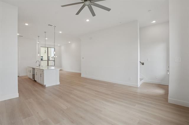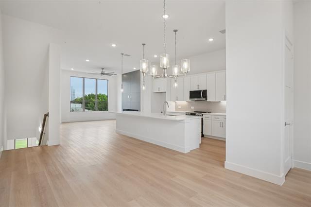 MOVE IN READY AND JUST RECENTLY COMPLETED! Be the first person to live in this brand new, upgraded unit with premium luxurious vinyl plank throughout and trendy designer tiles in bathrooms and utility. The main living area boast 11 ft ceilings with lots of natural light. Extended 12 foot kitchen island with beautiful quartz counters and soft close cabinets. Relax in your living area with a stylish 72 in horizontal fireplace. Interior designer inspired finishes. Goodland Townhomes is a contemporary townhouse community comprised of 25 three story luxury units. Conveniently located on the corner of Goodland and Havenhurst near downtown Farmers Branch. This revitalizing area has many newer projects and includes restaurants, Cox Farms Market, and Dart Green Line Tram within walking distance. There are also multiple parks, as well as hike and bike trails nearby. Photos are stock photos and finish outs may vary by unit.