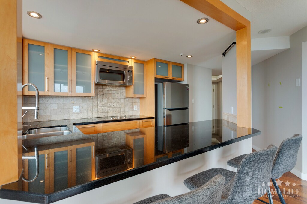 Spacious 1 Bedroom + Den Home with Exceptional Views in Surrey City Centre Located in the heart of Surrey City Centre this well maintained 1 bed 1.5 bath plus den home offers excellent urban living with a highly walkable address and easy access to transit shopping dining parks and major amenities Nearby parks include Whalley Athletic Park Tom Binnie Park and Holland Park and the Gateway SkyTrain Station provides excellent transit options making commuting simple Grocery stores restaurants and retail are all within short distance Residents also benefit from building amenities including a gym pool sauna and recreation roomProperty Highlights - Highly walkable location - Excellent transit options - Proximity to parks - Near shopping and dining - Close to SFU Surrey campus - Building amenities included - Urban living convenienceBuilding Amenities - Recreation room - Fitness gym - Pool - SaunaSchools - Theresa Clarke Elementary - Kwantlen Park Secondary School - Surrey Traditional School - Queen Elizabeth Secondary School - City Centre Learning Academy - Central City Junior Kindergarten - Holy Cross Regional SecondaryRestaurants - USTAAD G76 - Narra Restaurant & Lounge - Dominion Bar + Kitchen - Lao Cai / Cai's Chinese Cuisine - Pho 68 - Skye Avenue Kitchen & Lounge - Twisted IndianAmenities / Attractions - Bear Creek Park - Surrey Bend Regional Park - Green Timbers Urban Forest Park - Surrey Nature Centre - Holland Park - Whalley Athletic Park - Tom Binnie ParkShopping / Super Centres / Malls - Central City - Guildford Town Centre - Cedar Hills Shopping Centre - King George Blvd retail outlets - City Parkway shops - Central City boutiques - Local convenience servicesGroceries - Nesters Market - Al Judy Market - Walmart - Costco - T&T Supermarket - Lucky SupermarketTransit / Other Attractions - Gateway SkyTrain Station - Gateway Station Bus Bay 1 - Central City transit connections - Walking access to nearby amenities This generous 1 bedroom plus den unit features 1.5 bathrooms and stunning views Large windows bright accent walls and abundant natural light create an inviting living space A gas fireplace adds warmth and character The kitchen is fully equipped and the suite includes in-unit laundry Parking and storage are included with the home Residents enjoy access to on site amenities such as a recreation room gym pool and saunaUnit Highlights - 1 bedroom plus den and 1.5 bathrooms - Stunning views - Gas fireplace