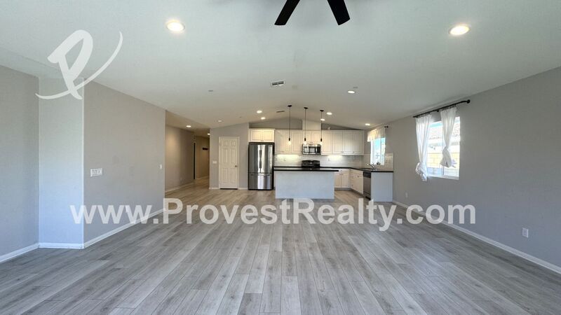 You do not want to miss out on this 4 bedroom, 2 bathroom spacious single story home!! Inviting entrance with open concept design. Beautiful vinyl plank flooring has been installed throughout. This home features a massive dining and living room area, perfect for guests and entertainment! The luxurious kitchen has white cabinets, gorgeous countertops, stainless steel appliances, and a large island with plenty of space for seating. The primary bedroom is a great size with a walk in closet. Enter the primary bathroom through the barn door to see dual vanities and a water room for extra privacy. The guest rooms are a good size and all are complete with walk in closets!! In house laundry room with washer and dryer included! Beautifully landscaped front yard with artificial grass (made for pets) and picnic table in the back yard. Save on electric bills this summer as this home is equipped with a huge solar panel system. Two car garage as well as a separate one car garage and so much more!! Close to schools, shopping and I15 for commuters. Pets may be considered, depending on type and number of pets, owner approval, 3rd party pet screening and increased deposit required. Lease term is twelve months. Renter's liability insurance required. Minimum deposit is equal to one month’s rent; maximum deposit equal to two month’s rent. At Provest Realty and Property Management, we strive to provide an experience that is cost-effective and convenient. That is why we provide a Resident Benefits Package (RBP) to address common headaches for our residents as well as Group Rate Internet that provides residents access to high-speed internet service at a low price with no hidden fees. Our program handles insurance, identity protection, air filter changes, utility set up, credit building (optional), rent rewards, and group rate internet (optional) at a rate of $39.95, plus $65 for group rate internet/month. This bundle of benefits are added to every property as a required program. More details upon application Total Monthly Payment (Rent + RBP + Group Rate Internet)*: {Rent} + $104.95 Listing Provided by: Provest Realty Inc.