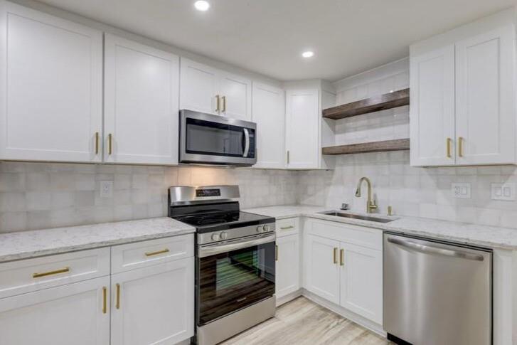 Welcome home to this beautifully remodeled duplex unit in the heart of Conyers! Every detail has been thoughtfully updated,offering a fresh,modern feel throughout. The bright and spacious kitchen features sleek stainless steel appliances,quartz countertops,open shelving,and plenty of cabinet space. With new flooring,updated fixtures and designer finishes,this home blends comfort with style. Enjoy off-street parking,a private backyard and a covered patio perfect for relaxing outdoors. Nestled in a quiet community yet just minutes from I-20,shopping,and dining — this home is ideal for those seeking both convenience and tranquility. Make this YOUR home today!!! Available immediately ~ Contact Us for more details and to see it in person.