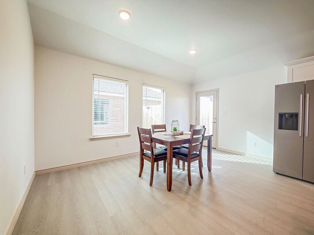 Welcome to this exceptional new construction by Silver Leaf Homes, where modern elegance meets everyday comfort. Thoughtfully designed, this beautiful home offers three spacious bedrooms and two full bathrooms, all anchored by an open-concept layout that seamlessly connects the living, kitchen, and dining areas—ideal for both daily living and effortless entertaining. The chef-inspired kitchen is the heart of the home, featuring a large island, a generous pantry, and a charming dining nook perfect for family meals, casual mornings, or hosting friends. The primary suite provides a peaceful retreat, complete with a spacious walk-in closet designed for both his and hers wardrobes, and a private en-suite bathroom that blends comfort with functionality. Step outside to a covered patio overlooking a freshly sodded backyard—perfect for enjoying warm West Texas evenings, weekend barbecues, or quiet moments outdoors. Brand-new landscaping and an irrigation system ensure a lush, well-maintained yard with minimal upkeep. Additional highlights include a two-car garage offering ample storage and everyday convenience. Lease terms include a 12-month minimum and a $1,000 nonrefundable move-in fee, with a complimentary application process. Up to two pets are welcome, with a $250 nonrefundable pet fee per pet, making this home a great fit for the whole household. Located in the highly desirable Lee High School District, this property offers access to excellent schools and a welcoming community. With its thoughtful design, modern amenities, and prime location, this home presents a rare opportunity to enjoy comfort, style, and convenience in one of West Texas’s most sought-after neighborhoods.