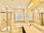 The exterior features a stone paver driveway,stacked stone entryway,screened-in paver patio,and fenced back yard. Inside,discover an open floor plan with recessed lighting that illuminates the 18x18 tile throughout the foyer,living room,kitchen,and bathrooms. You can engage with your guests from the kitchen overlooking the dining and living area. The kitchen boasts 42'' cabinets,black and stainless-steel appliances,custom backsplash,and granite countertops. After a long day,you'll find peace in the owner's retreat with an ensuite bathroom that features a walk-in shower,garden tub,and dual vanity. This community is centrally located to accommodate your needs.