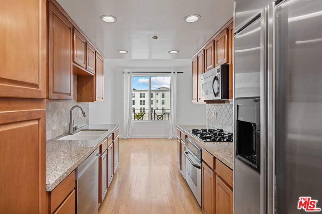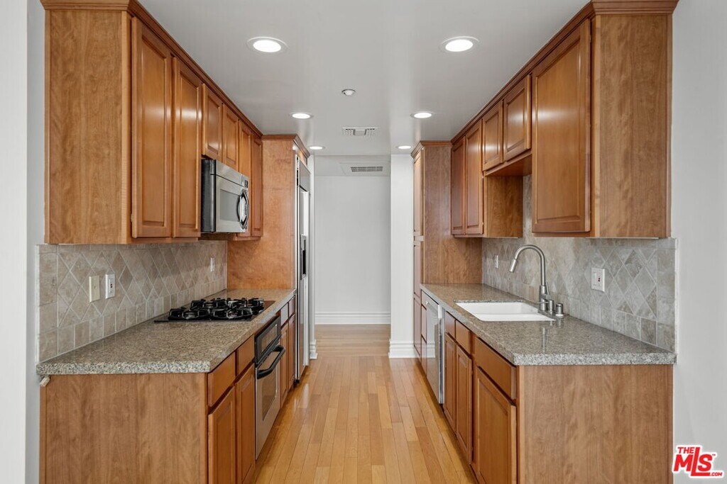 Step off the key access elevator directly into your spacious penthouse corner unit with unobstructed views from almost every room. Sunlit open concept living spaces and east-facing balconies with city views are ideal for entertaining or relaxing. The galley kitchen features stainless steel appliances and an open dining area, perfect for enjoying meals with family and friends. The primary suite includes a large walk-in closet and a luxurious bath with a separate shower and spa tub. The second bedroom offers north-facing views of the Santa Monica Mountains and no shared walls with other units. The third room, set apart from the main living areas, is ideal as a home office, creative studio, or guest room. Hardwood floors, fresh carpet, recessed lighting, central heat and air, and in-unit laundry complete the space. Enjoy the Westside lifestyle with nearby farmers' markets, shops, cafes, and the beach. The central location provides easy access to Santa Monica, Beverly Hills, and surrounding neighborhoods. MLS# 25606399