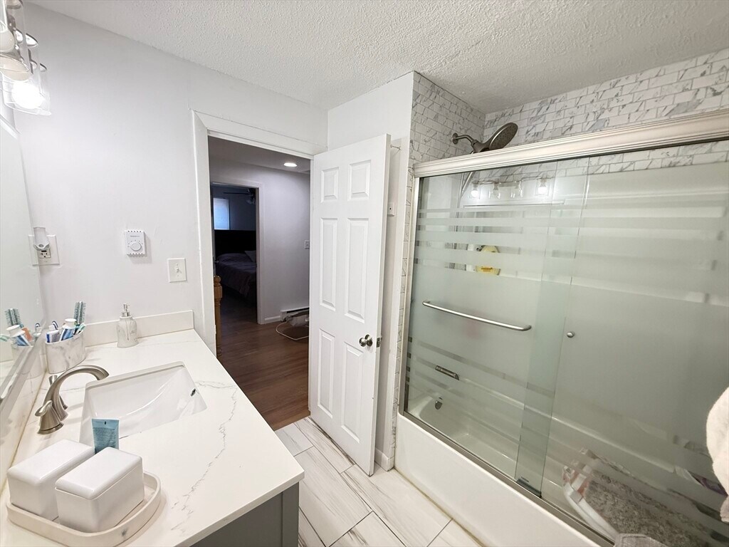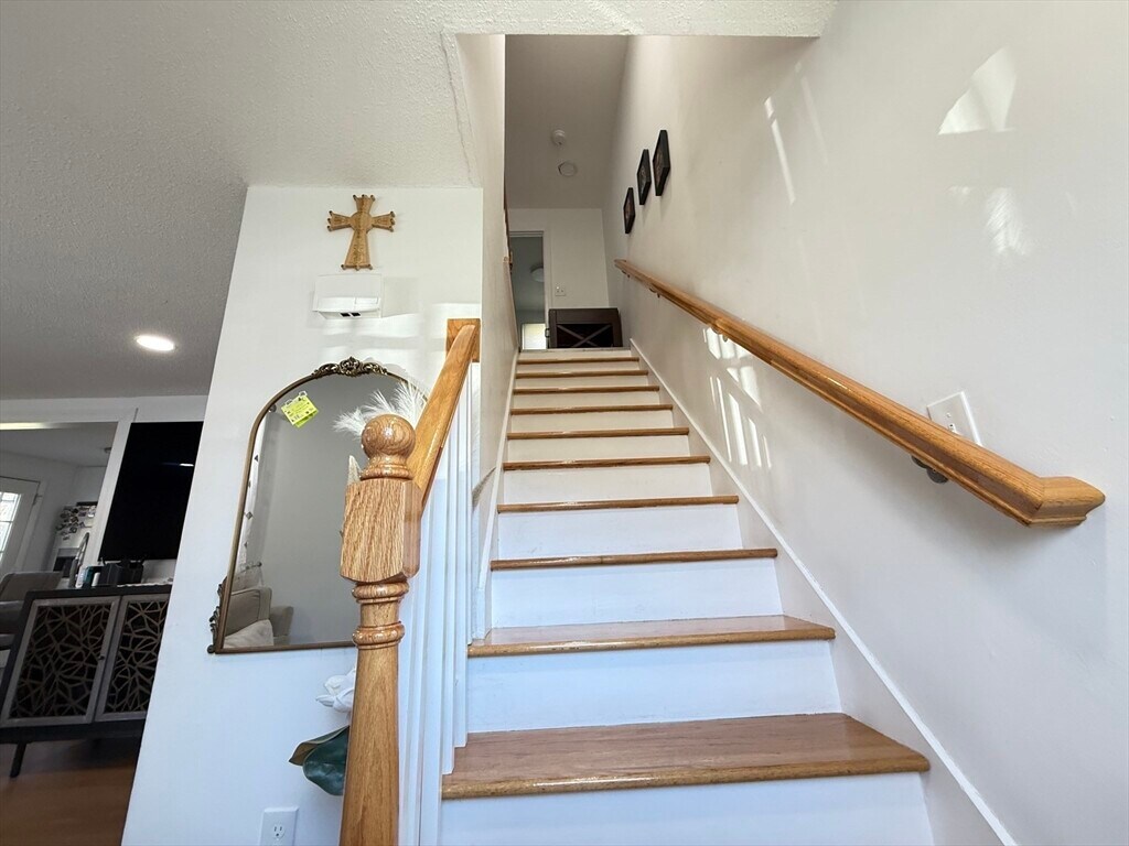 Well-maintained 3BR,2BA townhouse offering a spacious & functional layout w/ abundant natural light. Updated kitchen features white cabinetry,granite countertops,SS appliances,tiled backsplash & ample prep/storage space,flowing into a dedicated dining area. Main level offers a comfortable living area ideal for everyday living & entertaining. Upstairs,3 well-proportioned BRs include ceiling fan/light fixtures & generous closet space. Both full BAs updated w/ modern vanities & tiled tub/shower. Additional highlights include vinyl plank HW-style flooring,recessed & LED lighting,& full unfinished basement w/ laundry hookups & excellent storage. Enjoy a private patio & large open backyard. Off-street driveway parking & electric baseboard heat w/ individual room thermostats. Convenient to shopping,parks & major commuter routes. Move-in ready w/ neutral finishes in a great commuter location near I-495 & MBTA. Bright & clean unit,well maintained—won’t last! MLS# 73500895