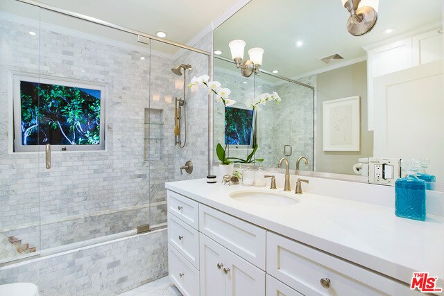 Built in 1917, this Remolded Prairie Craftsman exemplifies restoration at its finest. Situated on the perfect block, in one of the most sought after neighborhoods (Spaulding Square HPOZ); this beautifully landscaped home offers the finest in historical presence w/ modern comfort & convenience. New and rich floors & detailing throughout--this home features a lovely large living room. Remodeled Chef's kitchen w/ dynamic Carrera Marble back splash and Caesarstone countertops, stainless steal appliances and wine fridge. Light and bright Master with French doors that lead to the enormous wooden deck made for entertaining and dinning, inviting you to a private back yard or take a dip in the pool. An impeccably designed bathroom that includes Ann Sacks Marble tile. Very charming and spacious 2nd bedroom. The backyard is truly amazing for an entertainer's delight with a stunning Pool and Spa. Just off the Pool is a large & spacious Cabana/Guest house w/bathroom and loft bedroom. The main house is 2 bed & 1 bath. The guest house has two levels, both have a queen size bed. Main house has central air and the guest house has a mini split system on each level. MLS# 23-303733