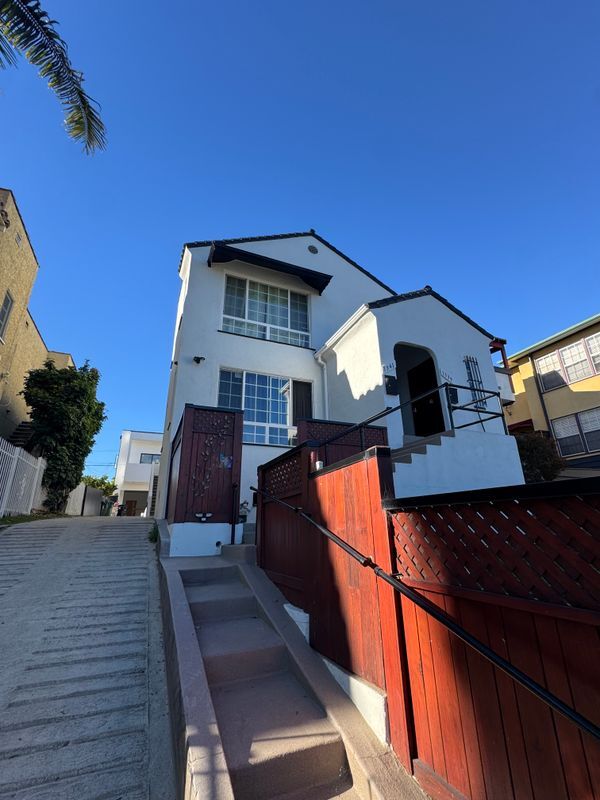 Upper unit of a completely remodeled and beautiful Spanish Duplex that feels like a large home. Stunning views, newer kitchen, wood floors and freshly tiled bath - all steps to restaurants, shops and close proximity to freeways and the Westside. Massive eat-in kitchen includes stainless steel appliances, laundry inside, central HVAC and a patio off the large primary bedroom showcasing incredible views. Off Street parking and a yard is perfect for relaxing and unwinding.