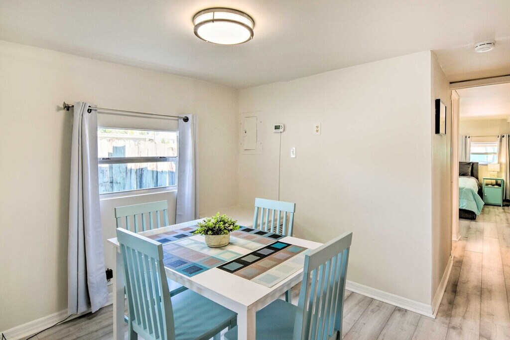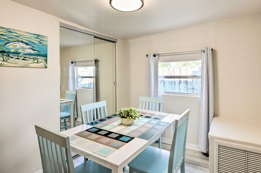 Find your dream Florida getaway at this Key Largo vacation rental! Located less than 2 miles from John Pennekamp Coral Reef State Park, this 3-bedroom, 2-bathroom home offers easy access to the area's stunning natural beauty. Start your mornings by making breakfast in the well-equipped kitchen and dining al fresco before venturing out. Afterward, soak up the sun on a private beach, go boating, or enjoy a memorable experience as you swim with dolphins! After idyllic days, cool off in the bright, airy interior. This home is pet-friendly with a fee and features a gas grill and a central location. The outdoor living space includes a private yard, dining area, seating, and beach chairs. Inside, you'll find 3 Smart TVs, a dining table, a breakfast bar with seating, and an open floor plan. The kitchen is well-equipped with a coffee maker, cooking basics, dishware, flatware, a toaster oven, and a blender. Parking is available in the driveway for up to 4 vehicles. Pets are welcome with a $50 fee per pet, with a maximum of 2 pets allowed. Located less than 2 miles from John Pennekamp Coral Reef State Park, this home offers easy access to Key Largo's stunning natural beauty. Enjoy the convenience of a central location, making it easy to explore the area's attractions. This property features step-free access and keyless entry for your convenience. There are 2 exterior security cameras: one on the front of the home facing the front outdoor entry, and one on the side of the home facing the side driveway. The cameras are outward facing and do not look into interior spaces. The cameras actively record video and sound while guests are in residence. Smoking, events, parties, or large gatherings are not allowed. Guests must be at least 25 years old to book. Additional fees and taxes may apply, and a photo ID may be required upon check-in. [SI]