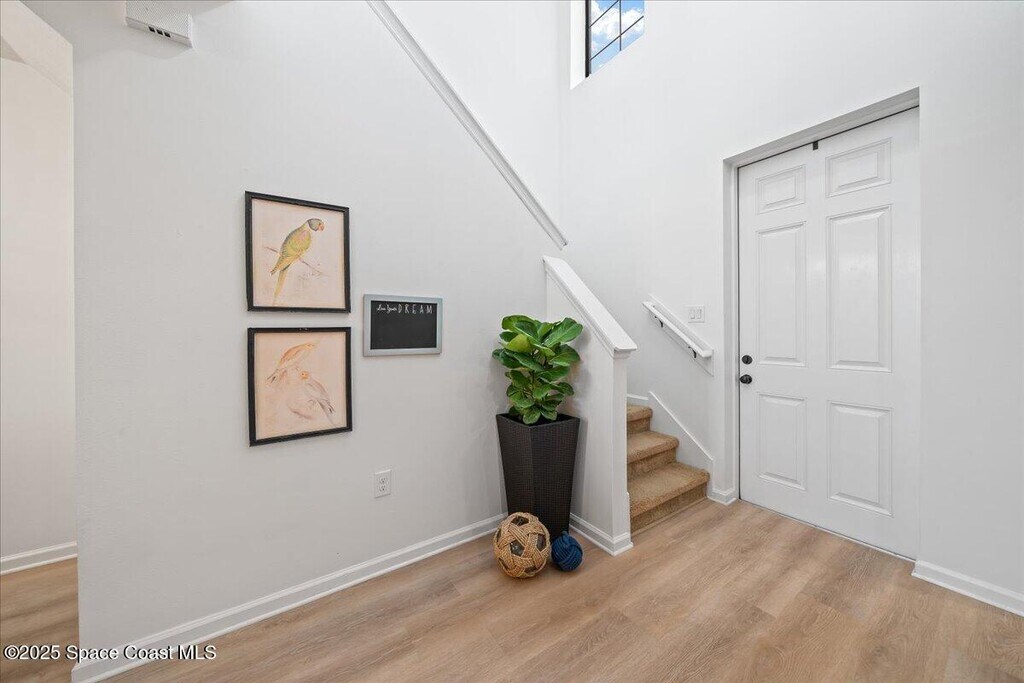 This spacious 2-story townhouse in the sought-after Montecito community features 3 bedrooms,2.5 baths,with the primary bedroom on the FIRST floor. The open-concept kitchen boasts granite countertops,stainless steel appliances,and a breakfast bar,seamlessly flowing into the bright living area with abundant natural light. The primary bedroom includes an en-suite bath for added privacy. Upstairs,a versatile loft can be used as an office,playroom,or media room. The two secondary bedrooms are generously sized with walk-in closets. Enjoy the peaceful private courtyard with lake views,perfect for relaxing. Located within walking distance to the beach,and with easy access to shops,restaurants,schools,and Pineda Causeway,commuting to I-95 is a breeze. MLS # 1069038