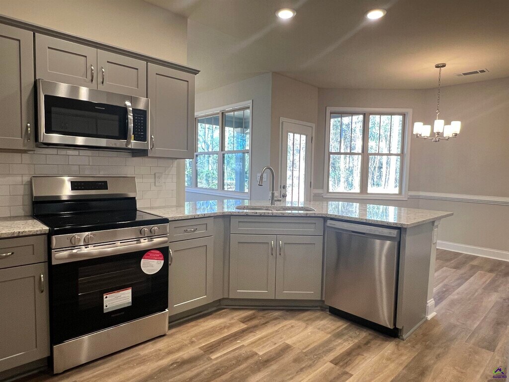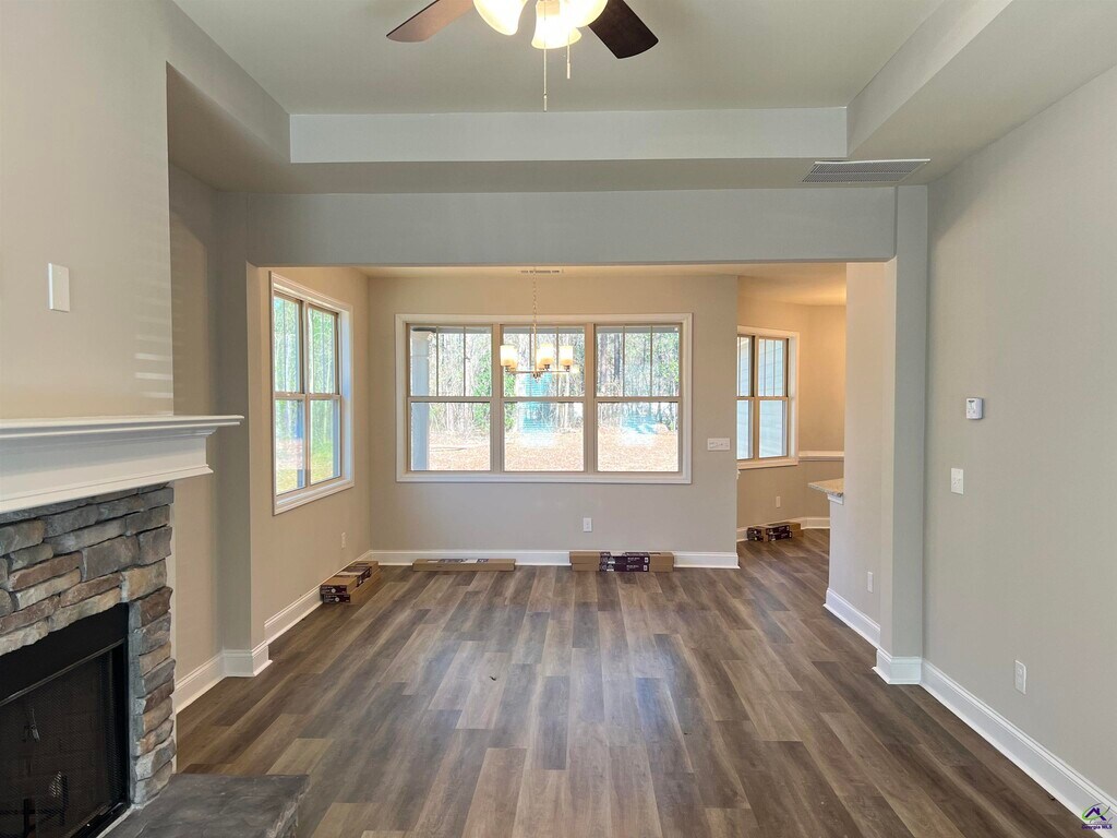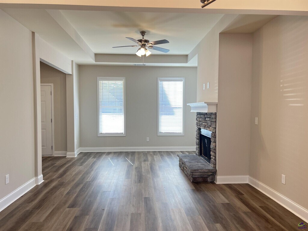 Beautifully Done and Brand New 3BD/2B Ranch Style Home in Country World Subdivision on a quiet wooded lot with quick access to Downtown. So many great features, such as the spacious foyer that flows seamlessly into an open-concept floor plan, a stunning stone wood-burning fireplace, strategically placed so you can enjoy the warmth and ambiance from the kitchen, dining area, and living room alike, sleek SS appliances, SPC flooring throughout that is waterproof and scratch-resistant—perfect for busy families and pet owners. Master Suite serves as a true retreat, boasting a large ensuite bathroom with soaking tub and a generous walk-in closet. A charming front porch perfect for morning coffee and a covered back patio overlooking a spacious, private backyard—ideal for weekend BBQs and outdoor play. One pet is allowed up to 80lbs with a $400 Non-refundable Pet Fee. ** There is a $150.00 admin fee charged to new tenants. **All applications are processed first come, first serve. We allow a 72hr window for all documentation to be received for approval. If not received, we move to the next applicant who has applied. MLS ID 260354