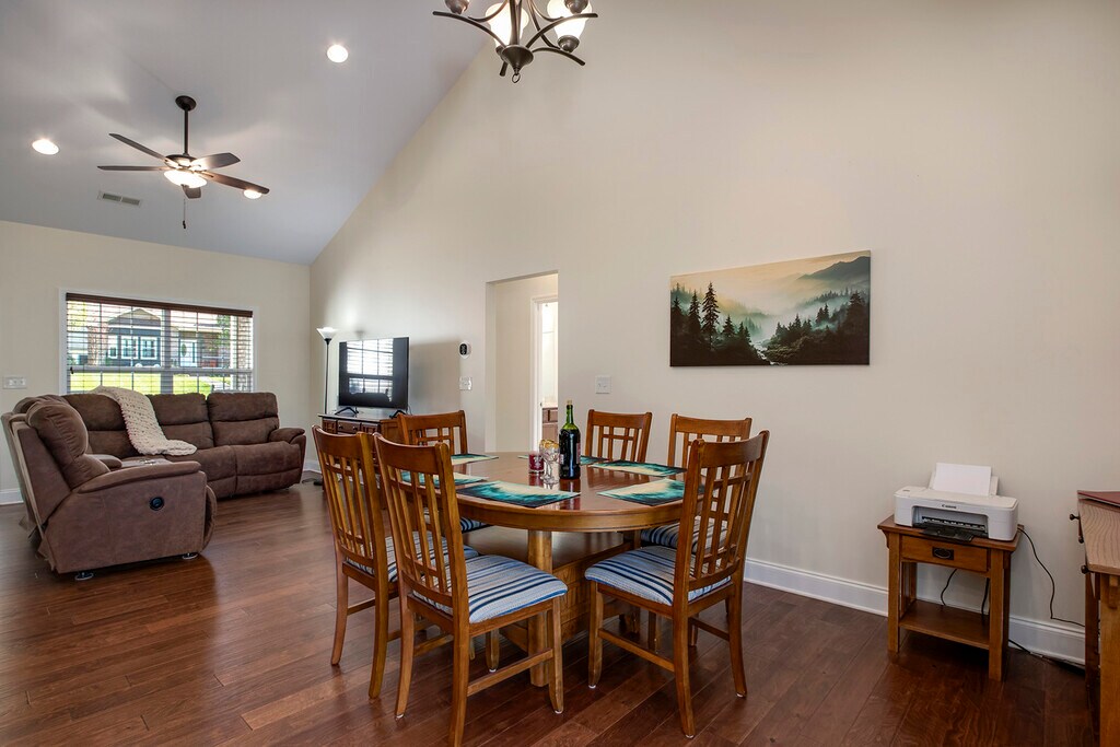 Beautifully crafted home perfectly positioned along the #1 fairway, offering sweeping views of the driving range and just a short five-minute walk to the Toqua Clubhouse. This inviting residence blends comfort, functionality, and stunning golf course scenery. Inside, you'll find three bedrooms and two bathrooms, highlighted by hardwood flooring throughout and an open floor plan designed for easy living and entertaining. The spacious living area flows seamlessly into the kitchen, creating a warm and connected space. Elegant trey ceilings add architectural interest, while the primary suite features an ensuite bath with a private water closet and a generous walk-in closet. Step outside to enjoy the screened porch with low-maintenance Trex decking—perfect for relaxing while taking in the beautiful surroundings. A two-car attached garage completes this exceptional home. Home is not fully wheel-chair accessible but does have ramps and most doors are wide enough for a chair. Association Fee INCLUDED in the rent. Tobacco Free and Non-Vaping Home. No Pets. Available between May 1st and October 31st. Utilities included. Credit, background, and rental history / home ownership check required. Security and cleaning deposits required. Minimum credit and income/fund requirements Room Measurements: • Kitchen 9.4 x 20.1 • Living Room 13.8 x 15.8 • Dining Room 13.8 x 11.2 • Primary Bedroom 13.11 x 13.7 • Bedroom 2 12.6 x 15.7 • Bedroom 3 12.6 x 11 • Garage 22.1 x 27.5