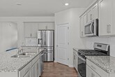 Spacious and beautifully designed, this 5-bedroom, 3-bath home offers flexible living options with a dedicated flex room (perfect as an office or den) and a large upstairs loft. The open-concept main level seamlessly connects the family room, dining area, and kitchen, creating the ideal space for both daily living and entertaining. The kitchen is a chef’s dream, featuring granite countertops, stainless steel appliances, a tile backsplash, and an oversized island. The first floor also includes a convenient guest bedroom and a full bath. Upstairs, the expansive primary suite is a true retreat with double vanities, a private water closet, walk-in shower, and not one, but two walk-in closets—including one that’s exceptionally spacious. Three additional bedrooms share a full bath with double sinks and a tub/shower combo. A generous loft area provides the perfect spot for a game room, or additional lounge space. Outdoor living is just as inviting, with a covered front porch and a back patio overlooking a level, fully fenced backyard. The yard backs up to natural woods and offers a walking path that leads directly to the lake. Pets will be considered but must meet HOA guidelines. There is a $300 non-refundable pet fee per pet. Rent includes landscaping, but tenant is responsible for all other utilities.