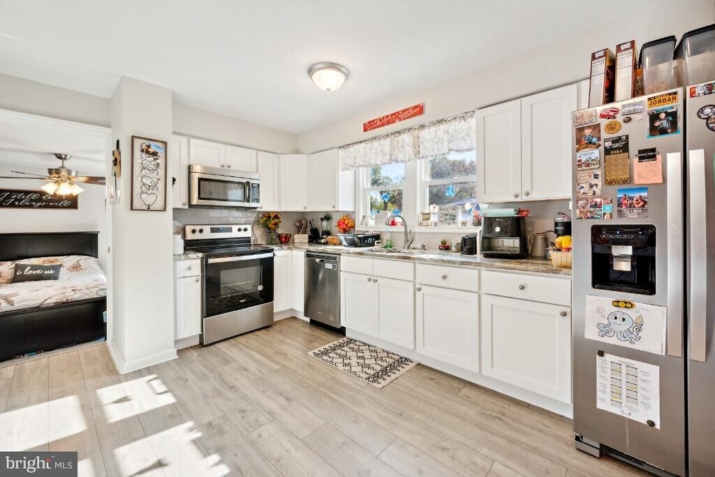 Welcome to this beautiful home that offers 4 bedrooms, Master Suite on 1st Floor includes powder room, three large bedrooms on second floor - newer carpet in all bedrooms & living room, vinyl waterproof plank flooring in kitchen & dining room. Enter through the front door foyer with large hall closet, enter into living room with wood fireplace, dining room, kitchen, upstairs to three bedrooms & full hall bath. All bedrooms & living room include fans w/lighting. Utility/Laundry room includes gas hot air furnace, gas hot water heater . This room gives you access to 2 car garage with extra storage room also exit door to back newer vinyl fenced-in yard. Newer electric service. Going upstairs and upstairs hallway is carpeted. In the upstairs hallway is a push up entrance to attic above house, There is also access to the attic above the garage at the top of the steps. Another benefit to the location of this house is the school is walking distance from the elementary school. View this house today, call Mike direct!
