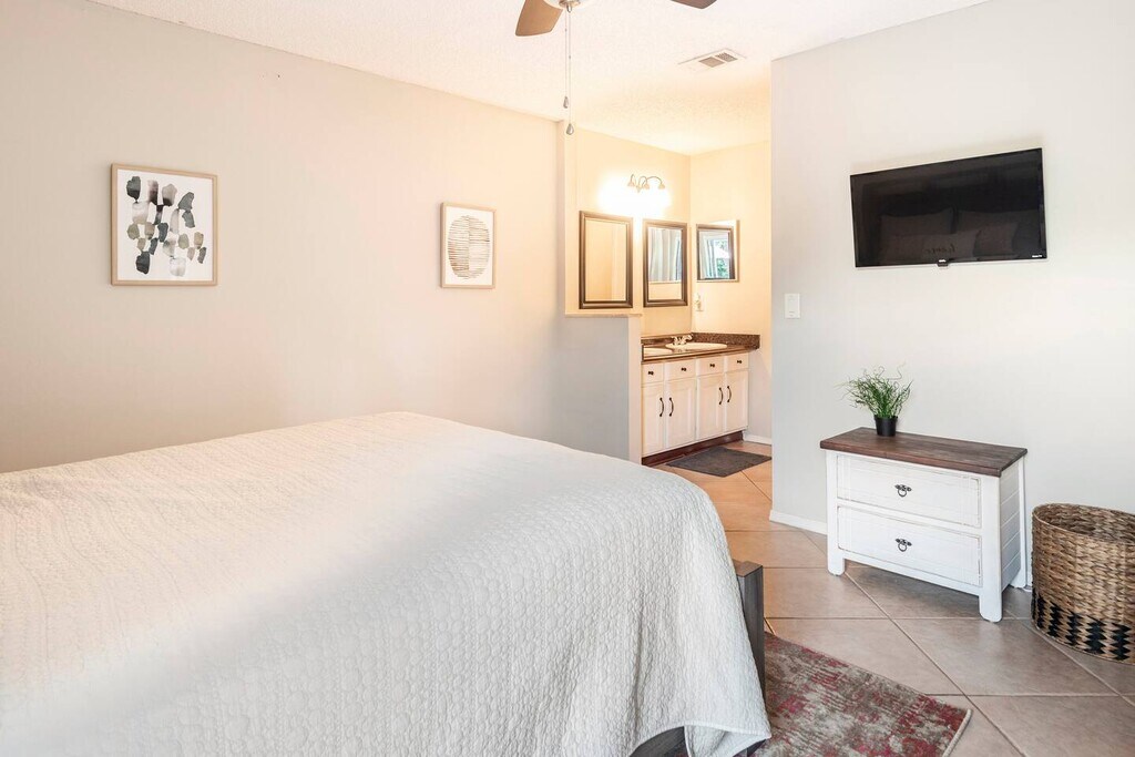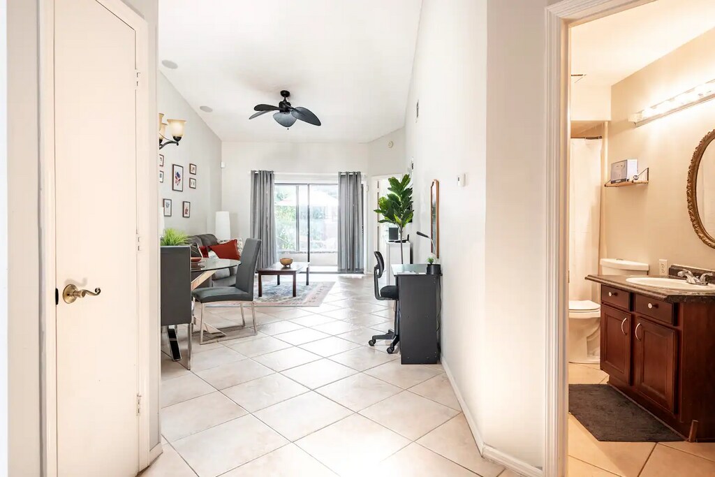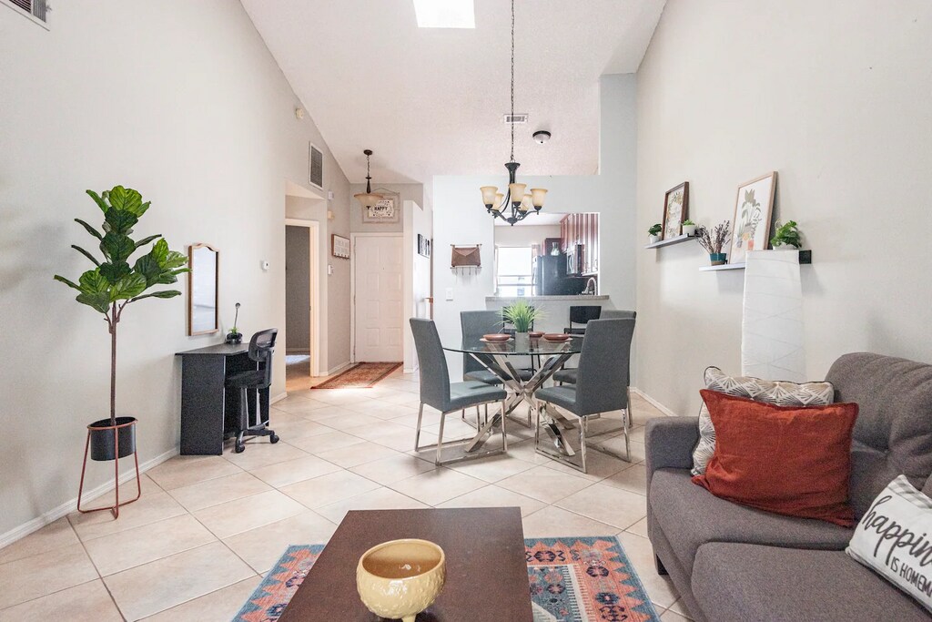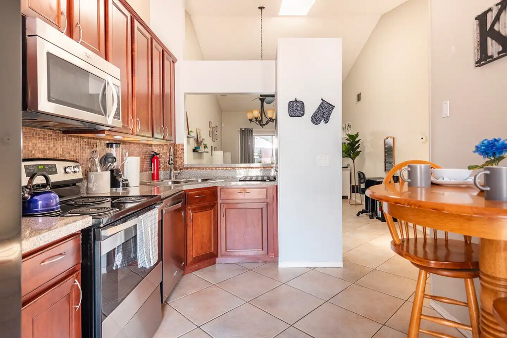 This is a Fully Furnished 1 story, two bedroom, two bathroom townhouse, with a one car garage, and driveway holds up to 3 cars. Includes community pool and private outdoor patio. Townhome near everything. Enjoy a stylish experience at this centrally-located place. This place is nearby: The loop shopping center 5 mins away.Hospitals 10 minsDisney 20 minsDowntown Orlando 30 minsLake Nona 15 minsUniversal Studios 25 minsWekiva springs 40 mins away.Amenities include: Air conditioningCooking basicsDishes and silverwareHair dryerHeatingKitchenSmart TVWifiBathtubBed linensClothing storageExtra pillowsBlanketsHangersIronCeiling fanCarbon monoxide alarmFire extinguisherSmoke alarmBaking sheetBlenderDining tableDishwasherFreezerHot water kettleMicrowave OvenRefrigeratorStoveToasterWine glassesWasher/Dryer on siteBackyard Outdoor furniture PatioParking on premisesCommunity Pool