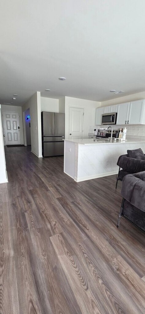 Beautiful 4 Bedroom 2.5 bathroom Home in Harris Landing New Construction (Oct. 2025) Available May 1st, 2026 $2,000/mo, Optional Furnishing (amenities) rent $50/mo. Welcome to Harris Landing, a brand-new 2025 subdivision located just 15 20 minutes from Greenville and ECU Health. And 30-40 minutes to Seymour Johnson AFB. This spacious and modern 4-bedroom, 2.5-bath home offers over 1,700 sq ft of comfortable living space, designed with convenience, style, and functionality in mind. The main level features an open-concept layout with a large living room. The kitchen includes brand new Whirlpool stainless steel appliances, a Samsung Bespoke French door refrigerator, white shaker style cabinetry, white quartz counters, a pantry, large stainless-steel sink with garbage disposal and a large bar area with an intimate breakfast nook, this dining area is perfect for gatherings. Upstairs and downstairs includes a smart Ecobee thermostat that can be controlled through your phone. And front door has a smart keypad that can be controlled through your phone. Throughout the house are high-end light blocking blinds that slowly open on their own with one quick tug. Upon entry, a dedicated office/den/dining room is available. The garage has space for one small car. Upstairs, the primary suite offers a spacious area equipped to easily fit a large bedroom set. Through a modern glass paneled sliding door is a private walk-in shower bathroom, dual vanities, and a large walk-in closet. Three additional bedrooms and a full hallway bathroom provide plenty of room for family, guests, or a home office. Generous sized rooms that can fit up to queen size suite. The laundry room is located upstairs for convenience and will include high-end large capacity Samsung smart washer and dryer. Outside, the backyard features a clean, open lawn, and front patio. Driveway comfortably fits three vehicles. Key Features Brand-new construction (2025) 4 bedrooms, 2.5 baths 1,765 sq ft Primary suite with large walk-in closet and ensuite Stainless steel appliances Large living room Office/den/dining room Garage (1 vehicle) Driveway parking (3 vehicles) High-speed internet available Quiet, newly built subdivision Security Deposit amount determined by the owner. For each pet, there is a non-refundable move-in fee of $200 and monthly fee of $35. Elevate your living experience with our optional Resident Benefits Package ($45/month). Enjoy peace of mind and extra perks designed to make renting easier and more rewarding: - $100,000 in personal liability protection - $10,000 in personal belongings protection - Credit Booster for on-time payments - build your credit just by paying rent - Accidental damage & lockout reimbursement credits - Plus more exclusive resident perks! Property is syndicated by Nomad as a courtesy to owner. Owner will conduct all correspondence and showings. BEWARE OF SCAMS - Nomad will never ask you to pay any amount prior to applying and all payments are processed through our secure online tenant portal direct to Nomad.