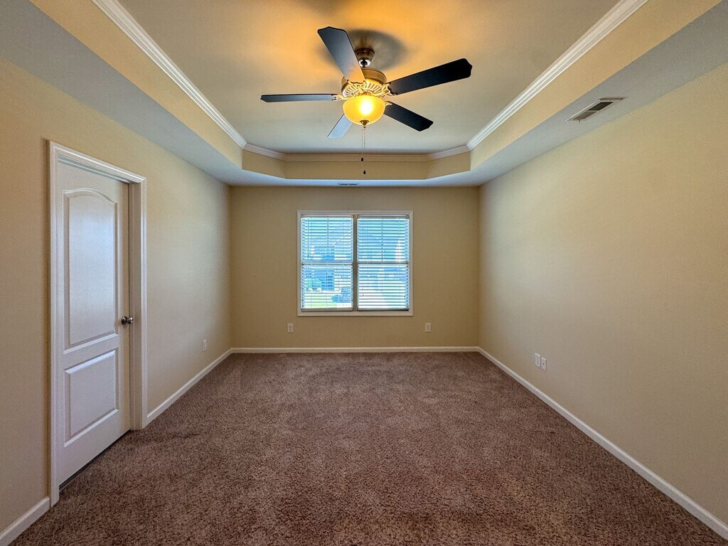 This stunning 4-bedroom, 2.5-bathroom home boasts an open floor plan, perfect for entertaining guests or spending quality time with loved ones. The spacious kitchen features a convenient island and is equipped with sleek stainless steel appliances. The primary bedroom is a true retreat, with trey ceilings, a walk in closet and an attached bathroom complete with a soaking tub and separate shower. Step outside to the covered patio and enjoy the fresh air. No smoking. One pet is negotiable with a $250 nonrefundable fee.