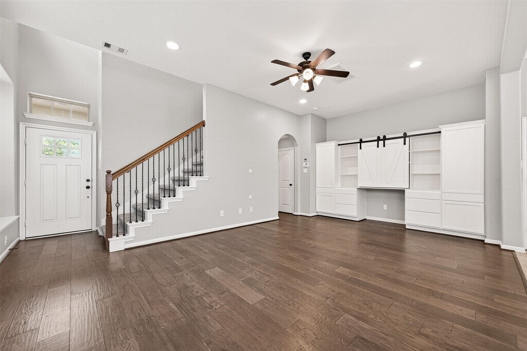 READY TO MOVE IN! Enjoy the relaxed lifestyle of the Master Planned Community of Woodforest! This well-kept 3-bedroom,2.5-bath townhome sits in a quiet cul-de-sac within walking distance to Stewart Elementary,Harvest Market,coffee shops,parks,pools,sports fields,a golf course,restaurants,CVS & more. Inside,an open-concept layout offers great natural light. The kitchen features 36” cabinets,granite countertops,stainless steel appliances,and includes the refrigerator. The living area has durable vinyl plank flooring and a custom built-in with barn doors. All bedrooms are upstairs. The spacious primary suite includes a walk-in shower and soaking tub. Two secondary bedrooms share a Jack-and-Jill bath,and the flex room is ideal for an office,playroom,or game room. Available January 3d,2026 MLS# 87742880