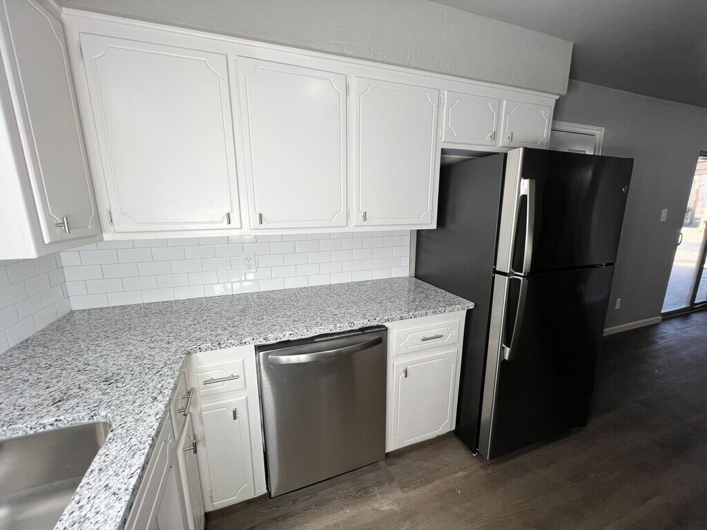 Welcome to this stunning 4-bedroom, 2-bathroom home located in the vibrant community of Lawton, OK. This property boasts a large backyard, perfect for outdoor activities and gatherings. The kitchen is a chef's dream, equipped with brand new stainless steel appliances and new granite countertops, offering a sleek and modern aesthetic. The home also features durable and stylish LVP flooring throughout, ensuring easy maintenance and longevity. Additional storage needs are met with a handy storage shed, providing ample space for your belongings. The large patio is an ideal spot for relaxation or entertaining guests. This home is a perfect blend of style, comfort, and convenience. Don't miss out on this incredible opportunity!