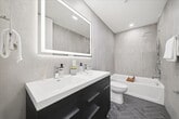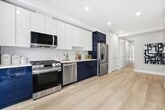Be the First to Live in This Ground-Up 2026 Built New Construction Home in the Riverview Arts District of Jersey City Heights. This spacious 3-bedroom, 2-bath residence offers designer finishes, abundant natural light, exceptional storage, private backyard outdoor space, and parking available—all just off vibrant Palisade Avenue and one block to the 2nd Street Light Rail with easy Hoboken and NYC access. Wide plank flooring runs throughout the bright open layout, while dramatic floor-to-ceiling windows fill the home with sunlight. The sleek chef’s kitchen features crisp white cabinetry, quartz countertops, herringbone tile backsplash, brass-accented fixtures, and stainless steel appliances. Both spa-inspired bathrooms feature double vanities, floor-to-ceiling porcelain tile, herringbone floors, rainhead shower systems, and a soaking tub. The primary suite opens directly to the backyard through a full wall of glass, creating a rare indoor-outdoor retreat. Brand-new LG washer/dryer included. Enjoy immediate access to Palisade Avenue’s restaurant row, neighborhood favorites like Modcup, The Franklin, and The Alps, plus Riverview-Fisk Park’s skyline views and beloved Sunday farmers market. Pershing Field, the Reservoir, boutique shopping, and NYC buses are moments away. Luxury rentals with this level of space, storage, outdoor living, parking, and location rarely hit the market—schedule your private showing today.