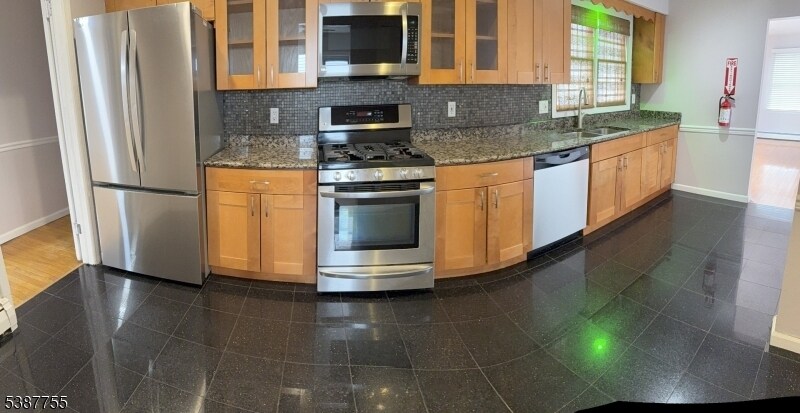 LOCATION! Conveniently located near Rahway Train Station , Bus stop #48 or #115 to NYC , shops, schools, restaurants, and municipalities all within the proximity. A must-see 3bdrm,1 FB,1st Fl unit, refinished & freshly painted. Renovated kitchen w/ double sink, wood cabinets, granite countertops, S/S appliances including microwave, dishwasher, and french door refrigerator with w/bottom freezer drawer. Hardwood flooring and Halo recessed ceiling lights are featured throughout, w/ remote-controlled ceiling fans. Each bedroom has ample deep closet space, as well as a linen closet or coat closet in the hallway. Dining/living rm combo *BONUS FAMILY RM which leads to a huge deck and backyard with motion-sensing lights. Laundry rm located in the basement . Bathroom offers a jacuzzi tub and shower .Tenant has sole access to the backyard and laundry room. NO PETS/NOSMOKING