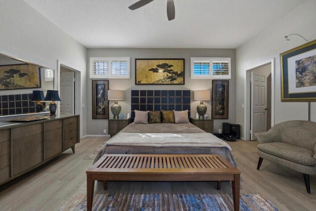 Amazing Palm Desert Vacations Home with an Amazing Location! Just 2 miles from El Paseo,you can enjoy upscale dining,local boutiques,and everyday conveniences within minutes. Located in the quiet,gated community of Vista Paseo,this home offers 3 bedrooms,3-car garage,Amazing Mountain views,Private pool,and spa,.Perfectly positioned for outdoor enthusiasts,the home sits near popular hiking routes including the Bump & Grind Trail and the scenic Cross Trail,with tennis courts also close by. Inside,the open floor plan provides excellent natural light and easy indoor/outdoor flow. Some furnishings will be updated with modern pieces,while select items will remain with the home,offering a blend of comfort and fresh style,fully furnished. 15k January,20k February-April