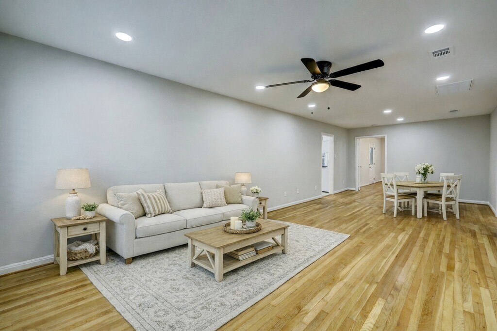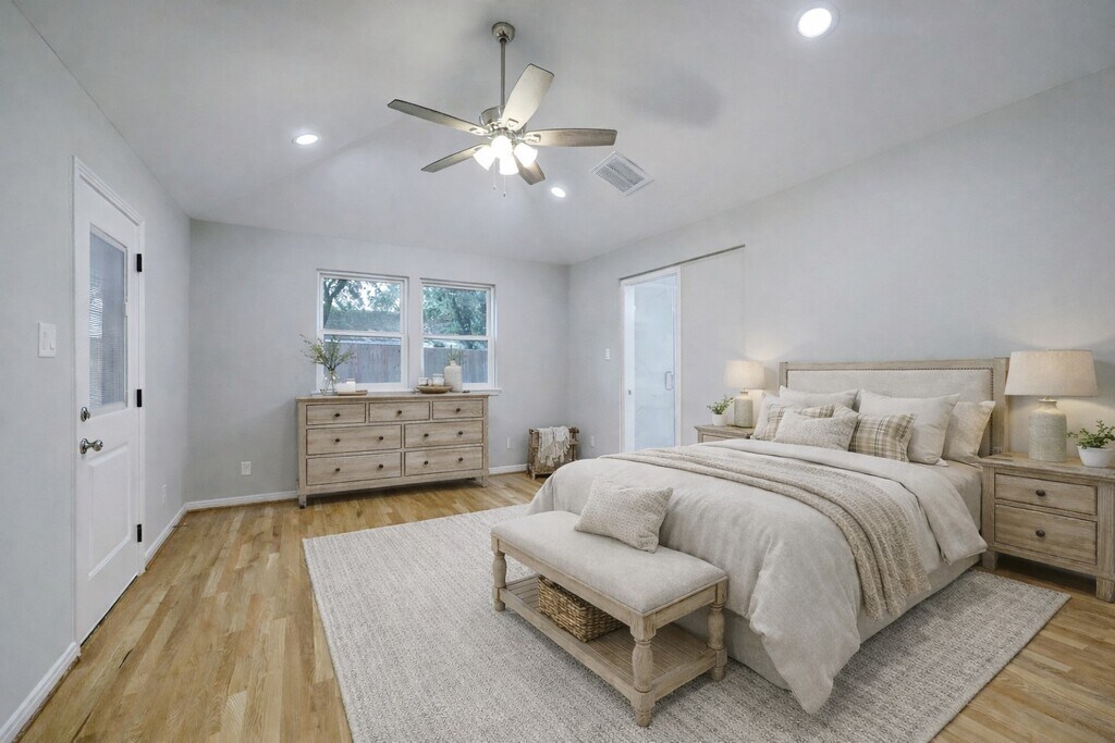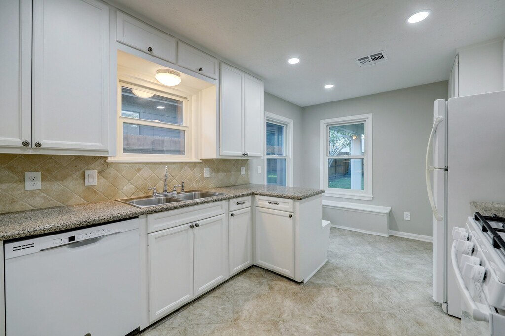 Renovated home in the desirable Oak Forest neighborhood offering 3 bedrooms and 2 bathrooms with a kitchen and cozy breakfast area. The spacious living and dining area provides a versatile,inviting layout. The primary suite is a true retreat with a vaulted ceiling,double sinks,walk-in shower,and generously sized walk-in closet. Step outside to enjoy a great patio and a well-proportioned backyard,ideal for relaxing or entertaining. Additional features include double-paned windows,hardwood floors,updated electrical system,PEX plumbing,recent HVAC,expanded closets,recessed lighting,and ceiling fans throughout. Expanded one car garage offers additional storage space. Great location! MLS# 14558805