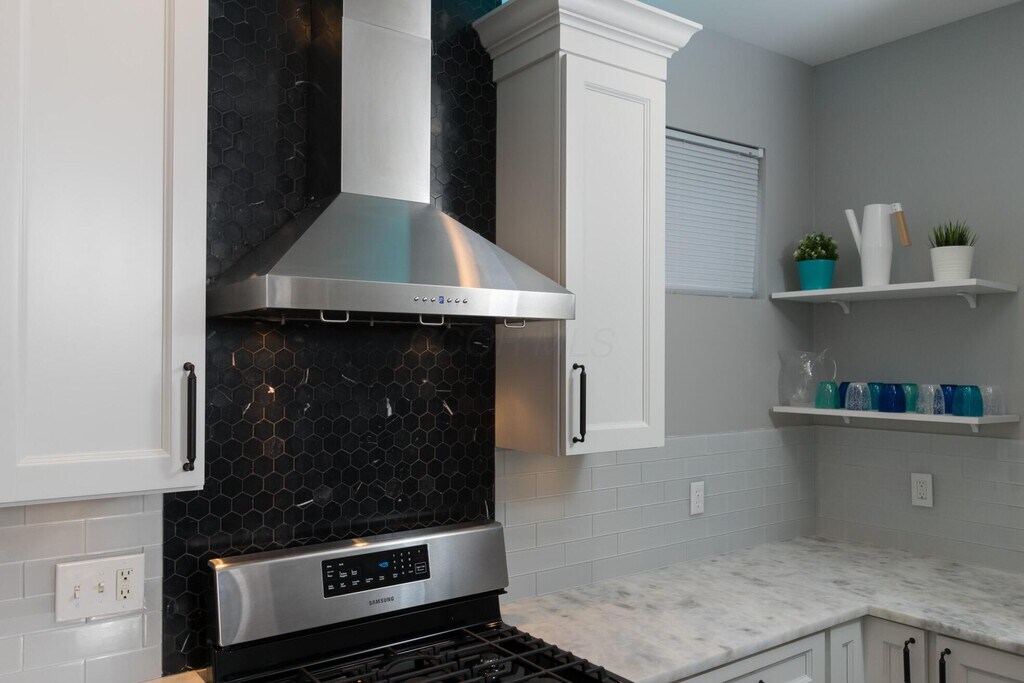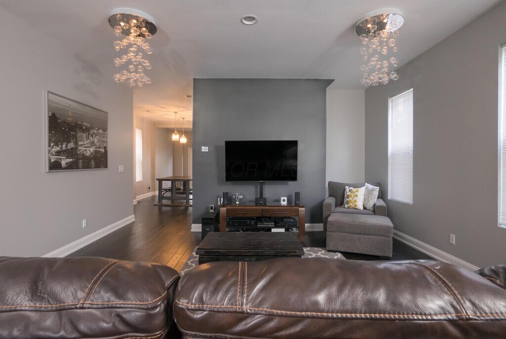 Welcome to this beautifully updated 4-bedroom,2.5-bathroom home featuring a spacious and modern layout. The main level offers an open floor plan with beatiful hardwood floors,a first-floor laundry room,and a convenient mudroom for everyday organization. The kitchen is equipped with stainless steel appliances,ample counter space,and a bar area with additional storage cabinets,perfect for cooking,hosting,or casual dining. All four generously sized bedrooms are located on the second floor,providing privacy and comfort. The owner's suite offers a walk in closet and a full bathroom. The finished third level offers valuable bonus space,ideal for a home office,playroom,media room,or guest area. Located just steps from the Trolley District and the Franklin Park Conservatory,this home places you in one of the most vibrant and walkable areas of Columbus. The backyard is designed for enjoyment,featuring a large deck perfect for entertaining and a storage shed. The backyard is fully fenced in and has a gate. This home has a driveway that can fit 3 cars. Property comes with cameras and a free app to the tenant to use the security cameras. A rare combination of space,updates,and location,this home is ready for its next tenant.