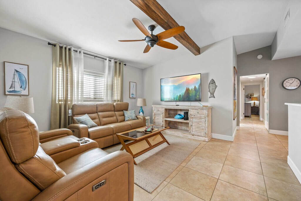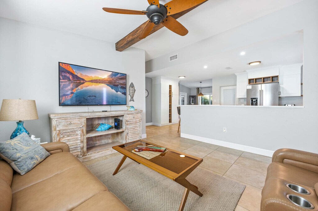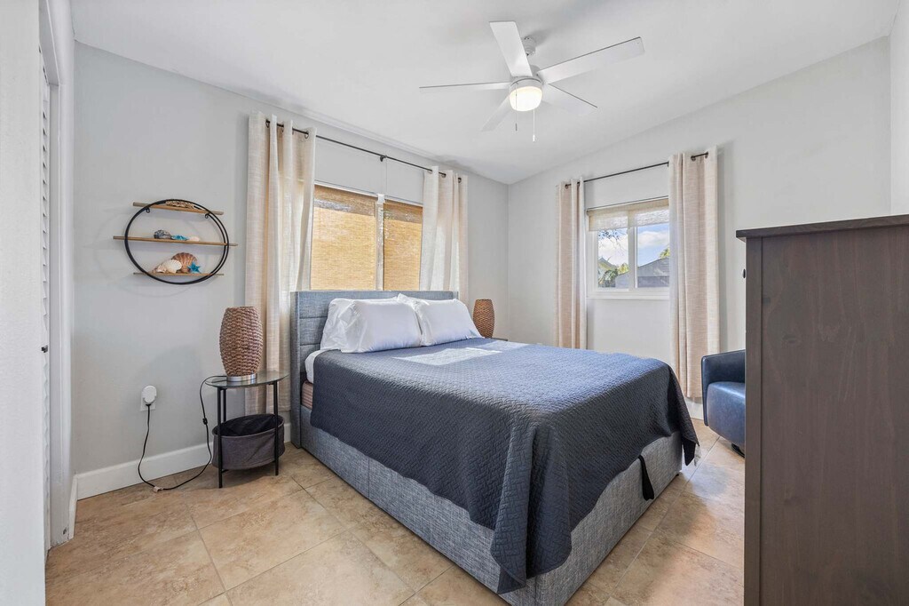 Experience a Cocoa Beach vacation in this renovated, stunning 3-bedroom home, where you'll feel at home. It's just a short walk to the beach and river, with easy access to downtown Cocoa Beach. This home sleeps 8 guests and features smart TVs, all the amenities, and high-speed Wi-Fi. Enjoy the private outdoor oasis with an outdoor shower and tiki hut lounge area, as well as a sun room with additional living space. To ensure a comfortable start to your stay, an initial stock of paper towels, toilet paper, tissues, coffee pods, creamer, sugar, light cleaning supplies, garbage bags, sponges, dish soap, and dishwasher tabs are provided. Plan to replenish these supplies as needed during your stay. Only dogs are allowed at this property, with a fee of $100 per pet, per stay. Located in south Cocoa Beach, you'll be a stone's throw from everything you could want to do on vacation. It's a quick walk to the beach or the Banana River. Enjoy days lounging in the sun, watersport adventures, a night out on the town, jaunts down to the space center or to view a rocket launch, or a day trip to Orlando for a theme park day. Uber and Lyft are prevalent in the area. Mailbox access is not available for guests. [SI]
