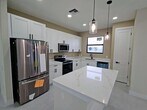 Brand new 4-bedroom,2-bathroom home with 2-car garage,located in the very desirable South Gulf Cove community. This beautifully finished residence offers a spacious open-concept layout,perfect for modern living. The master suite features a luxurious ensuite bathroom and a generous walk-in closet. Elegant porcelain tile flooring runs throughout the home,complemented by stylish ceiling fans and contemporary lighting fixtures. The kitchen is a chef’s dream with granite countertops,a large island,and stainless steel GE appliances. A dedicated laundry room with washer and dryer adds everyday convenience. Impact windows provide peace of mind and energy efficiency. Situated on a 10,000 sq ft lot,the property offers plenty of room for future addition,whether a pool,garden,or outdoor entertainment space. The rear patio is ideal for relaxing or enjoying time with family in the Florida sunshine. HOA membership is optional and not a requirement in this community. MLS# O6340893