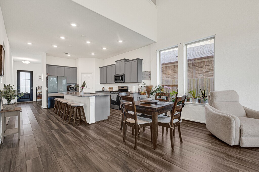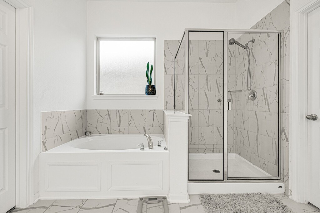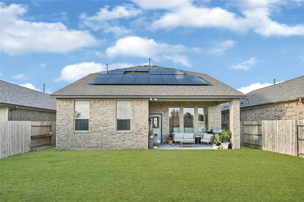 Step into comfort and style with this south-facing 4-bedroom,2.5-bath home in the master-planned Lago Mar community. With no back neighbors,this two-story home offers privacy and space. The open-concept layout features designer finishes throughout,including a kitchen with two-tone cabinets,granite countertops,center island with sink,and plenty of room for entertaining. An extended covered patio creates the perfect outdoor retreat. The spacious primary suite includes a large walk-in closet,dual vanities,a soaking tub,and walk-in shower. Built as an Energy Series READY home with solar panels,you’ll enjoy lower electricity bills. Living in Lago Mar means more than just a home—you’ll have exclusive resident access to one of the largest crystal-clear lagoons in Texas with beaches and resort-style amenities. Conveniently located near Galveston,Tanger Outlets,Kemah,and Buc-ee’s,this home is move-in ready and waiting for you. MLS# 24071322
