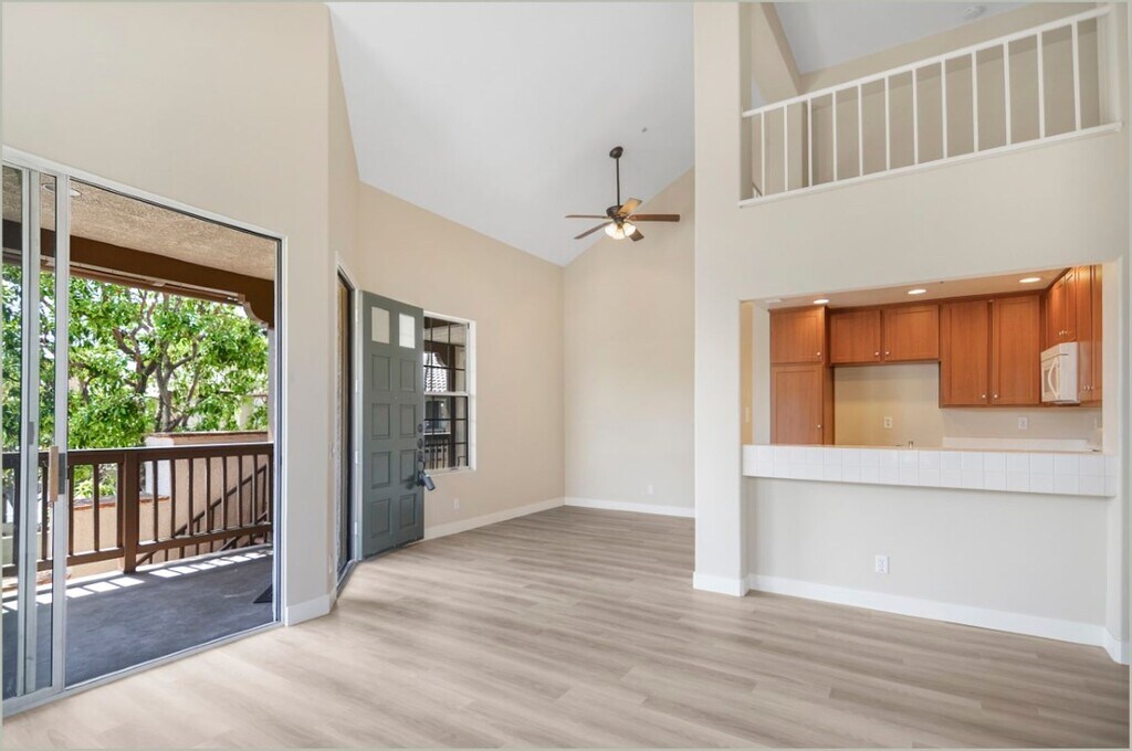 Discover an exceptional floorplan that offers unparalleled flexibility, featuring a spacious loft and two bedrooms! This charming home is designed to impress, with stunning upgrades and an inviting layout. Vaulted ceilings and an abundance of windows fill the space with natural light, complemented by adjustable custom window coverings to create the perfect ambiance. The primary suite boasts an en-suite bath, a mirrored wardrobe with built-ins, and a private patio—your own serene retreat. The versatile floorplan also includes a second bedroom and a generous loft, ideal for a home office, game room, or additional sleeping quarters. Situated in an upstairs location with no neighbors above or below, this home offers privacy and tranquility. It includes a one-car detached garage plus a covered carport space (#211), with additional guest parking available within the community. Enjoy resort-style amenities, including a pool and spa. Nestled in a prime Tustin Ranch location, this home provides quick access to the 5, 261, and 55 freeways, as well as top-rated Tustin schools. You're just moments from premier shopping and dining at The Tustin and Irvine Marketplace, The District, and Costco, with parks, recreational spots, and Tustin Ranch Golf Course all nearby. Don't miss this incredible opportunity!