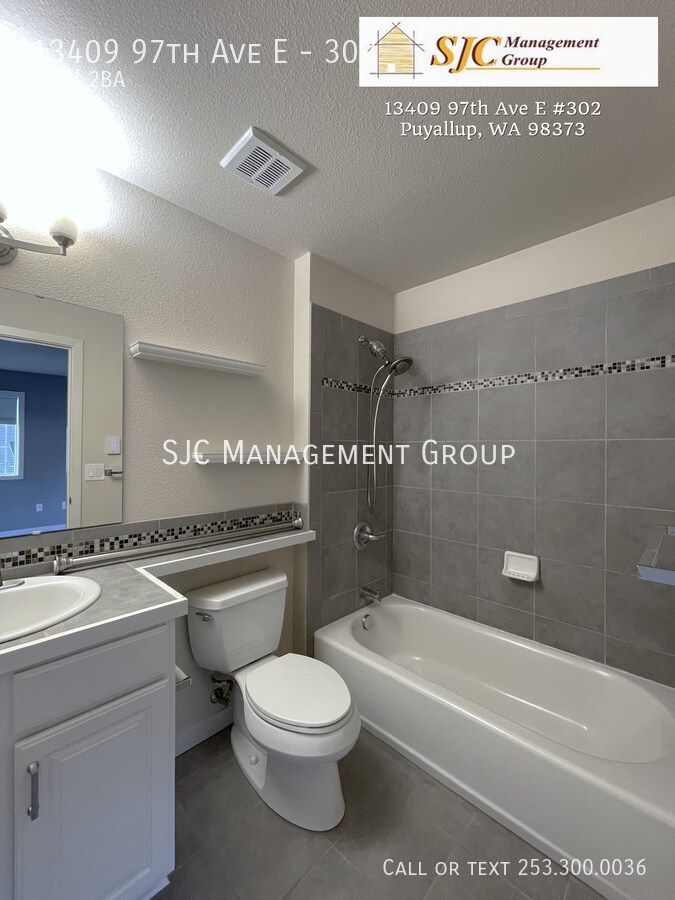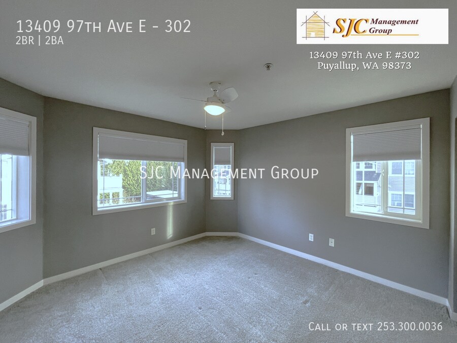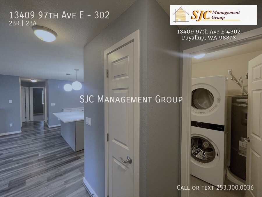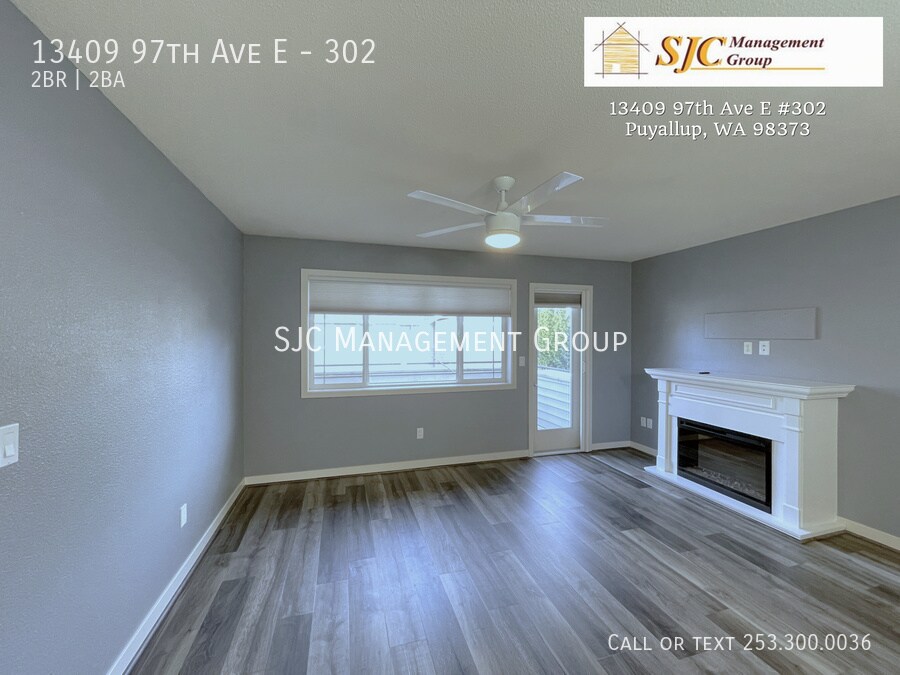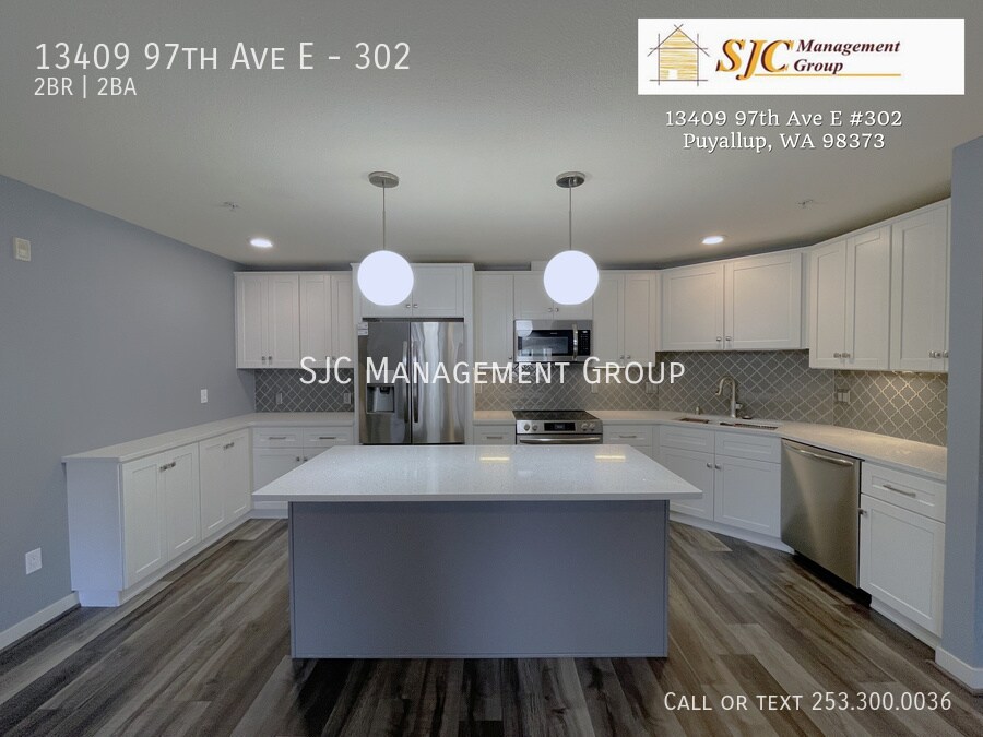Elegant 2 bedroom, 2 bath condo located in a gated community on South Hill in Puyallup. Situated on the 3rd floor of centrally located Building 6, across the street from the clubhouse, play area, overflow/visitor parking, and community mailboxes. Within the clubhouse, there is a gym, pool, hot tub, bathrooms, showers, kid library, and an event room that can be reserved through the front office. The home features soft neutral colors and white millwork throughout. The kitchen is stylish and modern with white cabinetry, quartz countertops, tile backsplash, stainless steel appliances, and a spacious island with seating. The open living room includes a fireplace with white mantel and clear glass fire rocks, and access to a private balcony. The primary bedroom offers a full ensuite bathroom. A second bedroom and full guest bathroom provide comfortable space for residents or guests. Full-sized stacked washer and dryer included. Extra Large 1 car garage with additional space inside for storage. Allows direct access to the secure hallway and stairs. $200 monthly flat fee for Water, Sewer, Garbage, Gas (paid by HOA fees) Pets [breed and size restrictions may apply] can be allowed, pet screening is required. Approved pets will incur a monthly pet fee of $45-$85, max two pets. **Per HOA Rules & Regulations, pets must be under 30 lbs, maximum 2 pets. For more information or to set up a viewing please contact the leasing team at SJC Management Group today! Please note showings can be scheduled online at any time. After hours or weekends, showings must be scheduled and confirmed by our staff before the end of the business day. Our business hours are Monday-Friday from 9 am to 5 pm. We are closed for all major holidays. ADDITIONAL TERMS: Required $85 at move in and additional $35 per month Resident Benefit Package offers an array of advantages. With this package, you'll enjoy convenient benefits such as regular delivery of furnace filters and additional perks designed to enhance your renting experience. Utilities: Power-Tenant responsibility $200 monthly flat fee to be paid with rent for Water/Sewer/Garbage/Gas/HOA Amenities Note: Gate and building door codes provided once showing is approved. The keys to the unit are in a lock box at the bottom of the stairs once inside the building.