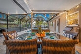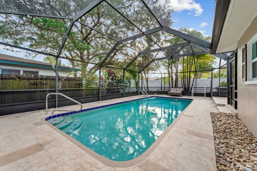 Welcome to Bayview Oasis, a relaxing 3-bedroom getaway nestled in a quiet neighborhood just minutes from Clearwater Beach and Indian Rocks Beach. Feel at home in this bright and airy home, professionally managed and curated for your comfort. The heart of Bayview Oasis is the expansive screened-in lanai, complete with a private pool, hot tub, large outdoor table for al fresco dining, lounge area with an outdoor sofa and TV, and a BBQ grill. The fully equipped kitchen features stainless steel Samsung appliances, a double oven, a dishwasher, a blender, a juicer, and a fondue pot. A coffee station offers a complimentary coffee bar featuring a Keurig Duo (drip and single cup). Includes a full-size washer/dryer, iron, hairdryer, Pack 'n Play, and games. Pets are welcome with a fee of $100 per pet per month. Located in a peaceful, well-established residential neighborhood in Clearwater, this home offers convenient access to the area’s top attractions. Clearwater Beach is 12 minutes away, and Indian Rocks Beach is 18 minutes away. The Clearwater Marine Aquarium is 10 minutes away, and John’s Pass Village & Boardwalk is 20 minutes away. The Florida Botanical Gardens are just 5 miles away, and grocery stores, gas stations, and local restaurants are all just minutes away. Quiet hours are observed from 8 PM to 8 AM, and noise monitoring devices are installed on the property. Smoking indoors, fireworks, and glass around the pool areas are prohibited, but there is a designated outdoor smoking area located 15 feet away from the property. Smoking violations or evidence of an indoor smoke smell will result in a minimum $250 remediation fee. The pet fee is $100 per pet per stay (or per month for stays longer than 28 days). Unattended pets, including service animals, will incur pet fees. Disabling or tampering with security devices will result in immediate eviction without a refund. Only guests listed on the reservation are allowed on the property. Any illegal activity, including drug use, will result in immediate eviction without a refund. Upon booking, you will receive a link to a secure Guest Check-In Form that must be fully completed prior to check-in. Check-in is at 4 PM, and check-out is at 10 AM. Maintaining the temperature between 68-80°F. Setting the AC below 68°F may cause issues and incur additional technician fees. Violation of any house rules may result in removal from the property without a refund. The primary suite and bedroom 2 each feature a dedicated workspace for remote workers. The pool is unheated, but typically refreshing year-round. The hot tub is heated and ready for your enjoyment. [SI]