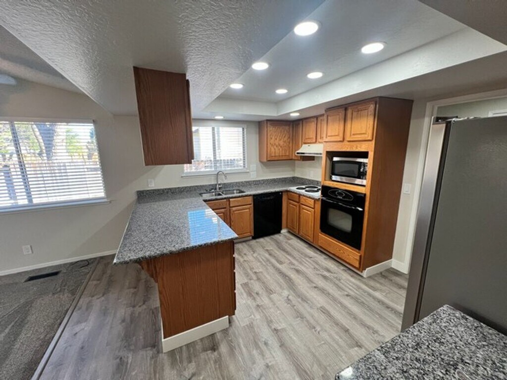 This refreshed home features all new plank and carpet flooring. Kitchen with granite countertops that includes new fridge, dishwasher, microwave, wall oven, and electric cooktop. Separate living and family rooms. Family room with wood burning fireplace. Laundry area with electric hook-ups. Primary bedroom with slider access to the backyard. Mature landscaped front and back yard with front yard service included. Large two car garage with work bench. Central heating and air. Close to shopping, restaurants, parks and recreation, entertainment and freeway access is just minutes away. Tenants responsible for all utilities - electric/gas, water, trash and sewer No pets or co-signers considered. This lease is to expire 06/30/2027 with option to renew. All properties require an application process. Each person over the age of 18 must complete an application. The application fee is $35 per person. Applications include running credit (650 or better), employment/income verification, and rental references. NV. BS.0143495, NV. PM.0164783