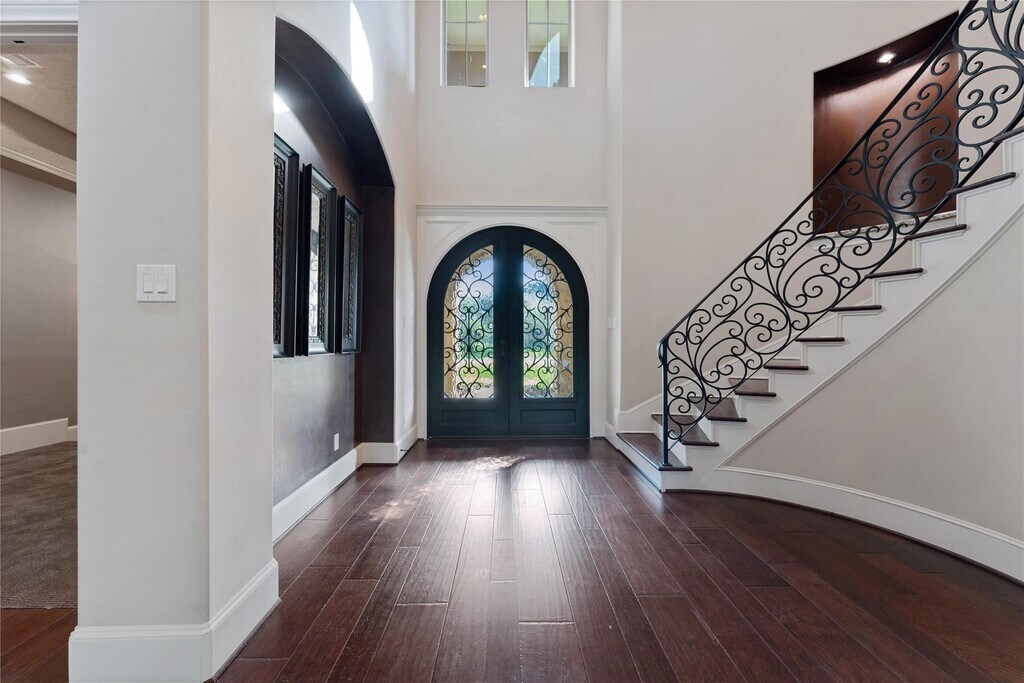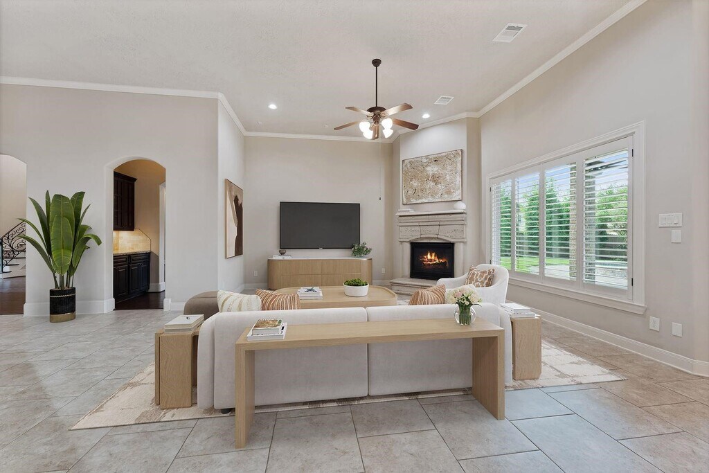 Sophisticated & timeless,this custom estate in the gated community of Kluge Lake sits on a coveted corner lot over half an acre. With 5,400+ sq ft,this 5-bedroom,5 full & 2 half bath home offers refined living throughout. A dramatic 2-story entry opens to formal & casual spaces w/hand-scraped wood flooring,crown molding,plantation shutters & abundant natural light. The kitchen impresses with Thermador appliances,a large island,butler’s pantry & seamless flow family room with gas fireplace & walls of windows. The first floor also includes a private study,formal dining,media room,wine room with wrought iron door & guest suite with ensuite bath. The primary retreat offers spa-like comfort with patio access. Upstairs features a spacious game room & 3 additional bedrooms,each w/private baths. Resort-style backyard with covered patio,full outdoor kitchen,pool,spa,fire pit & lush landscaping for privacy. Low tax rate,3-car garage & located across from the lake & scenic trails. MLS# 8542741