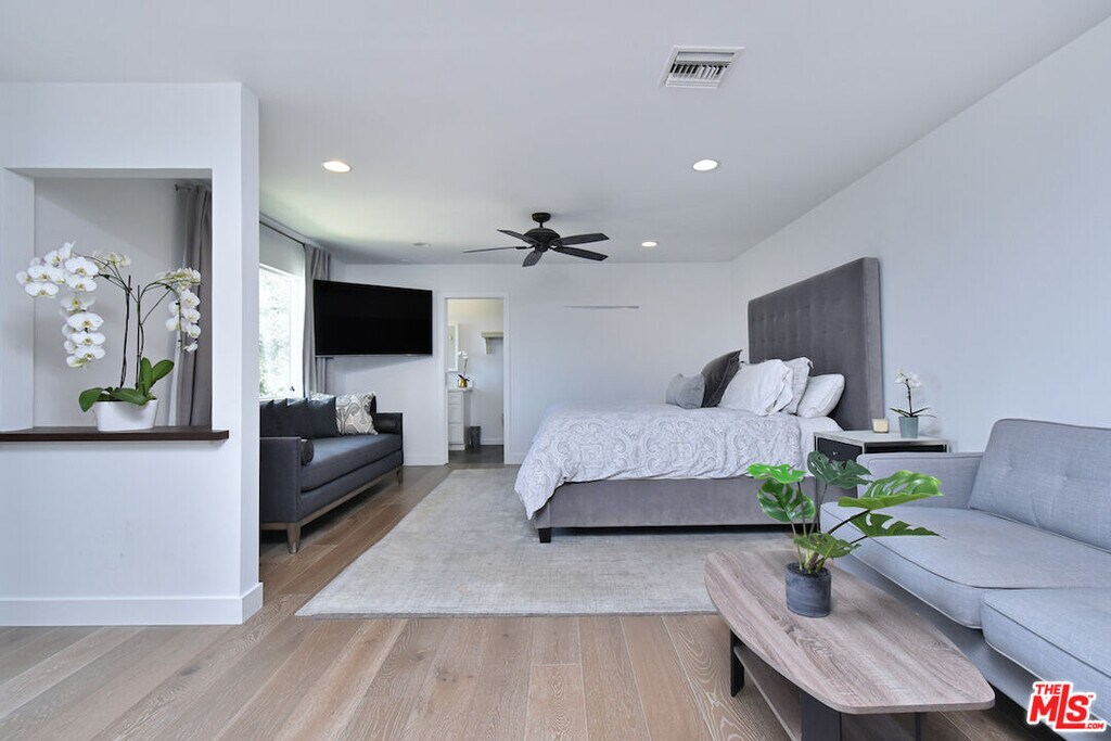Welcome to this fully furnished, beautifully gated, bright, two-story home in the heart of Brentwood. Upon entry you're greeted with stunning floor to ceiling windows and sliding glass doors which open to a gorgeous backyard. Entertain and lounge alongside the beautiful pool framed by a lush, landscaped yard, including a built in BBQ. The house is complete with a fully renovated kitchen, which opens to the dining and family rooms. There is also a gorgeous formal living room with a fireplace. There are 4.5 updated baths and 5 bedrooms, including two primary suites. The 5th Bedroom is currently being used as a gym with a Peloton bike. Centrally located, and close proximity to hiking trails. Available May 1, 2026. MLS# 26667545