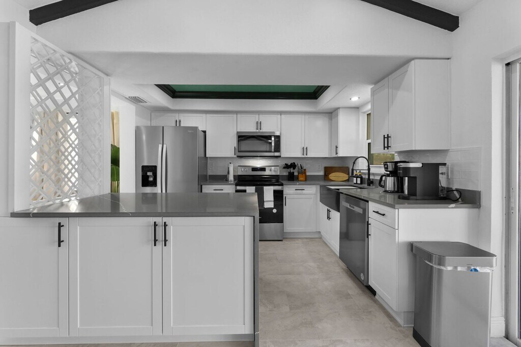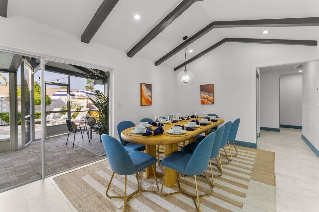This 4-bedroom house in Largo, FL, offers everything you need for an amazing vacation. With a private pool, hot tub, outdoor patio, and ample parking, this home is designed for relaxation and fun. Feel at home in this spacious property, perfect for families and groups, with its stylish bedrooms and modern bathrooms. Welcome to your ideal getaway! This spacious home comfortably accommodates up to 13 guests with its 4 stylish bedrooms, 2 modern bathrooms, and various inviting spaces. From a dedicated game room for endless entertainment to a chef’s kitchen equipped with high-end appliances, this home has been designed for relaxation and fun. The resort-style backyard boasts a private pool, hot tub, and gazebo, creating an oasis for outdoor leisure. Ideal for families and groups, this property offers comfort, luxury, and unforgettable memories. Up to 2 dogs are allowed for $125 per stay, no cats please. The heated pool fee is $100 per night, and the pool can be heated to about 20-25 degrees above the ambient temperature. Parking is available in the driveway for up to 4 cars, and street parking is not permitted. From delicious eats to exciting activities, trendy bars, and unique shops, Largo offers an unforgettable experience. Enjoy dining at Cafe Largo, Miller's Ale House, and The Original Crabby Bill's. Explore attractions like the Museum of Fine Arts and Walsingham Park. Renting a car or using rideshare services like Uber and Lyft makes it easy to explore the area at your own pace. The primary guest must be at least 25 years of age to book. Check-in is at 4 pm and check-out is at 10 am. Absolutely no parties are allowed, and violations are grounds for termination. Parking is limited to the driveway, and violators may be towed. The pool must be heated for the entirety of your stay, and a 3-day notice is required before arrival if you'd like the pool heated. The home includes a dedicated workspace in Bedroom 1, equipped with a desk and chair, providing a comfortable environment for remote work. [SI]