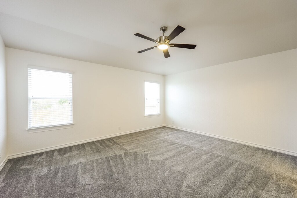 Welcome to 13414 Bristle Stalk, a beautifully designed 5-bedroom, 2.5-bathroom, 2,540 sq. ft. two-story home located in the sought-after Valley Ranch neighborhood of San Antonio. Offering generous living space and a functional layout, this home is ideal for growing households or those who love to entertain. The main level features a large living area filled with natural light, an open kitchen with ample cabinetry and counter space, and a convenient dining area perfect for everyday living. The primary suite is located on the first floor, providing privacy and comfort with an en-suite bathroom and spacious closet. Upstairs, you’ll find four additional bedrooms and a versatile loft or secondary living space, ideal for a game room, media room, or home office. The thoughtfully designed floor plan allows everyone to have their own space while staying connected. Enjoy outdoor living in the private backyard, perfect for weekend gatherings or relaxing evenings. Conveniently located near shopping, dining, schools, and major highways, this home offers easy access to everything San Antonio has to offer. All residents will be enrolled in a Resident Benefit Package. No pets allowed.